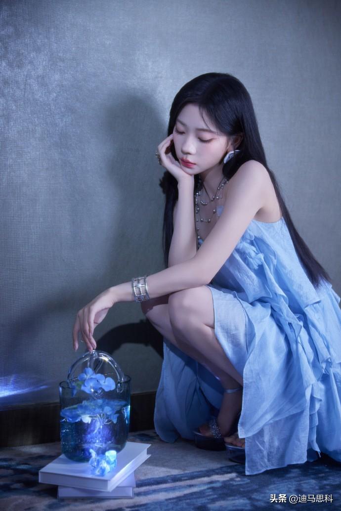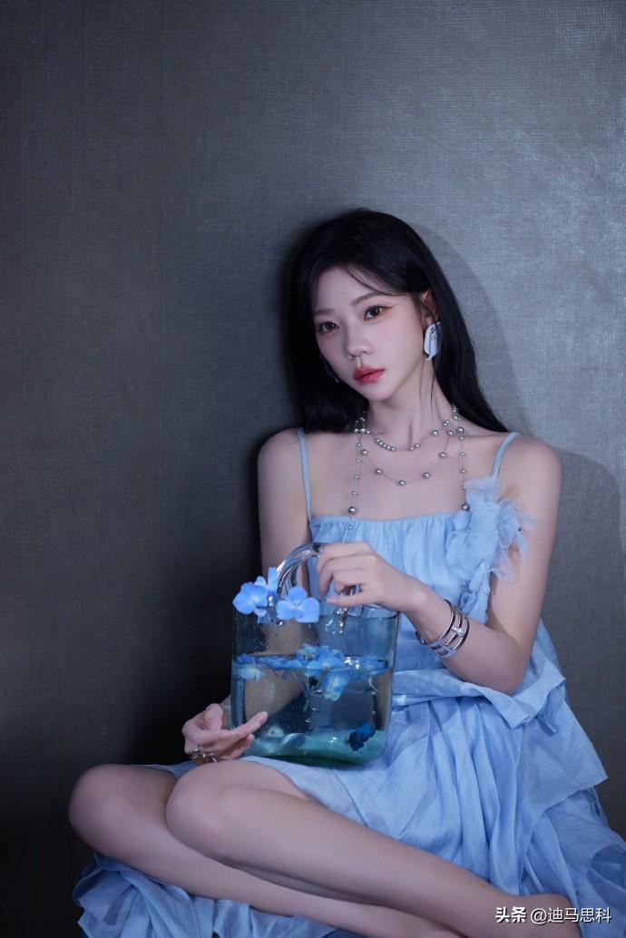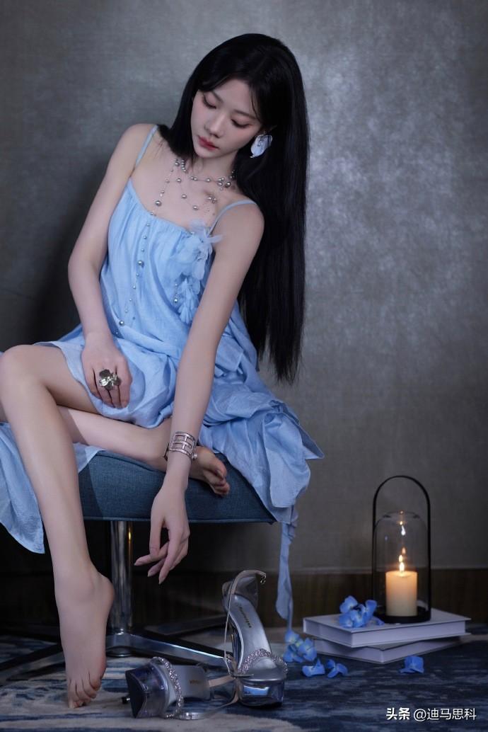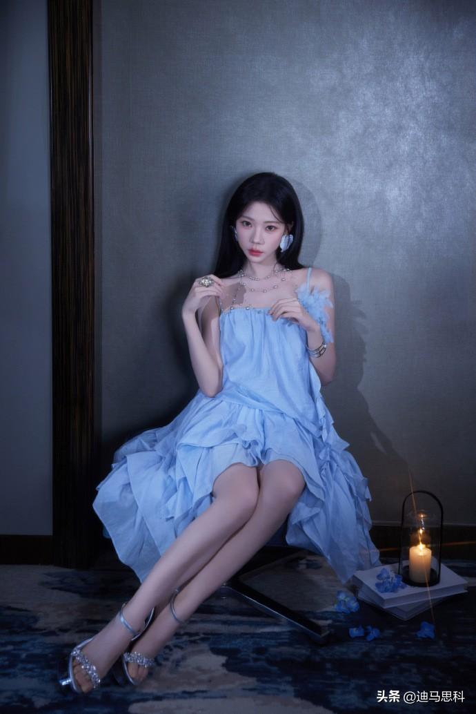 张紫宁她1996年出生于四川成都,本就青春靓丽。蓝色吊带裙凸显出她白皙的肌肤和迷人的肩颈线条,那盈盈一握的腰肢,在蓝色衬托下更显纤细。 搭配上银色镶钻细高跟,瞬间提升了整体的时尚感和高贵气质。细高跟让她的腿部线条更加修长笔直,每走一步都仿佛自带光芒,妥妥的时尚女王范!