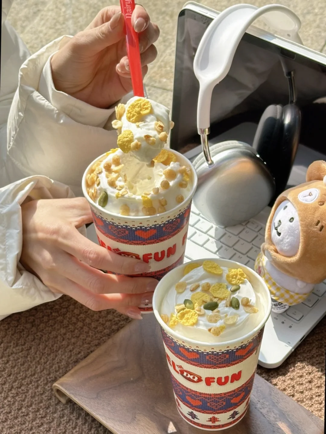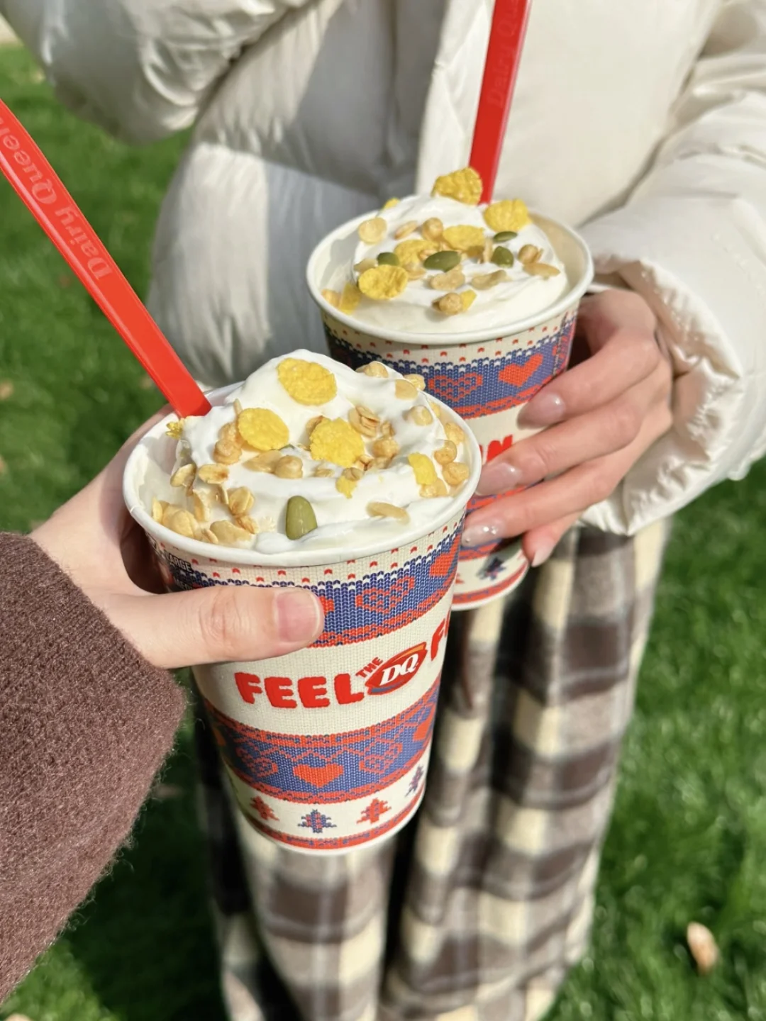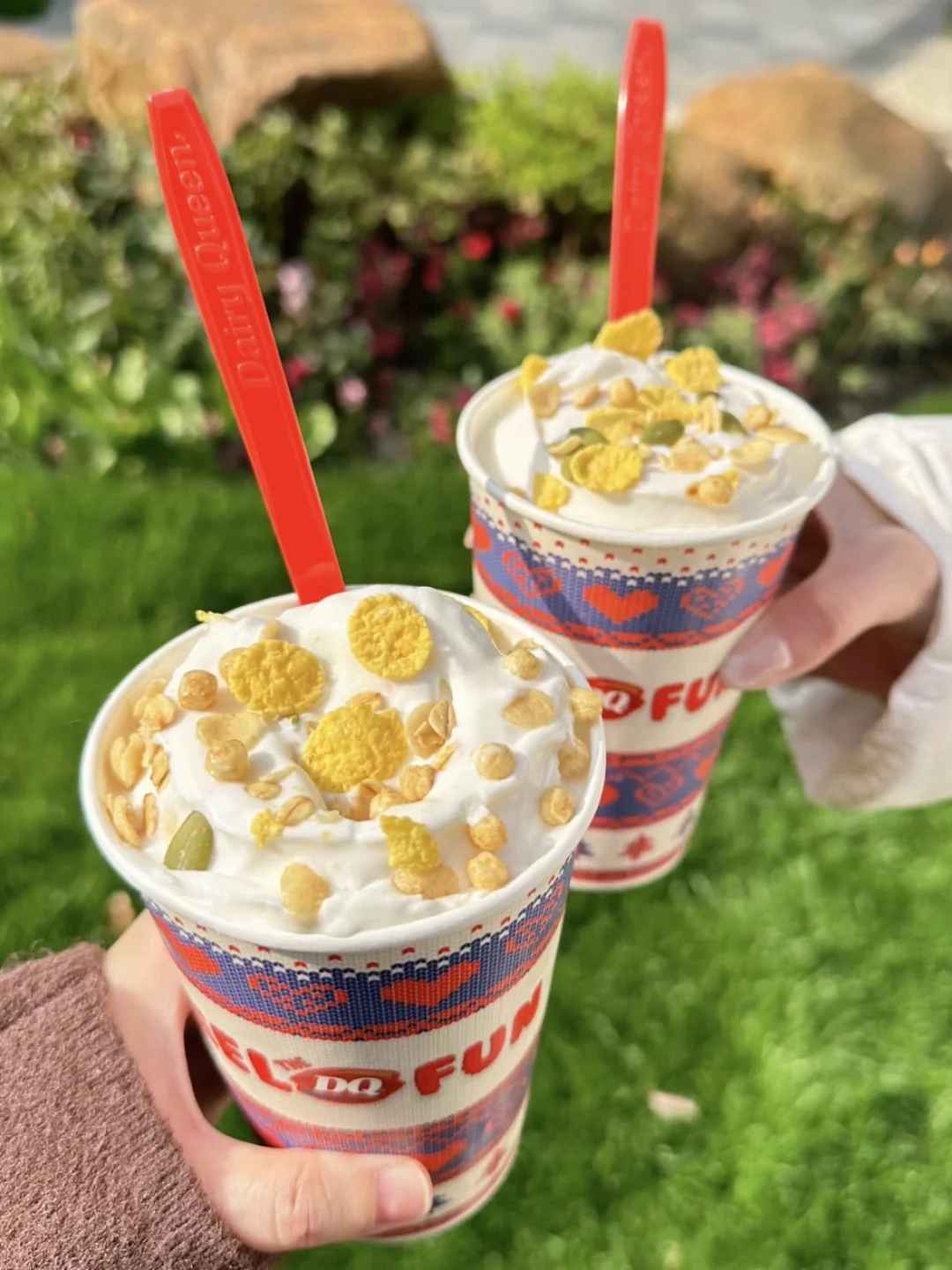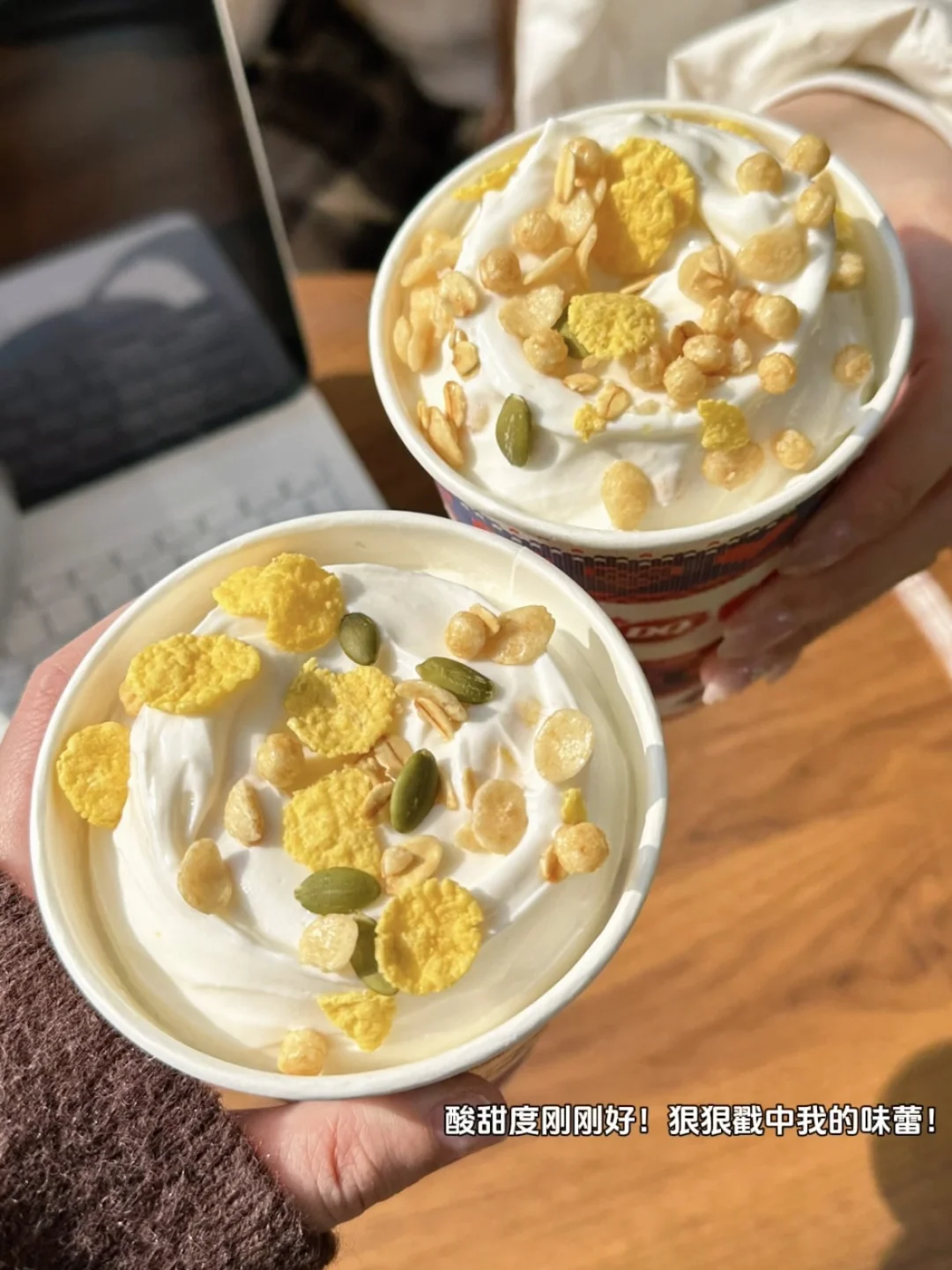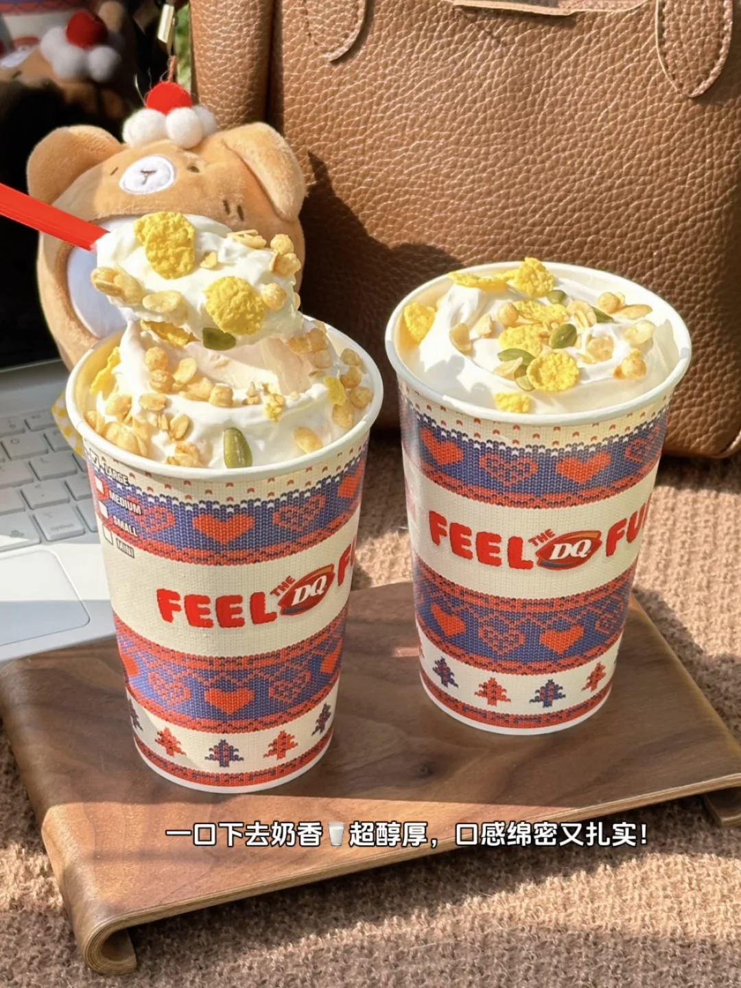 尊滴惊呆了啊!DQ的研发是没有瓶颈的吗?? 新出的希腊酸奶谷物暴风雪,好吃疯了啊!! 希腊酸奶的清爽酸感混合冰淇淋的绵密甜香🍦酸甜度刚好狠狠戳中我的味蕾!! 爱好不甜星人狂喜!一口下去奶香🥛超醇厚,口感绵密又扎实! 像在嚼冻得刚刚好的浓醇酸奶,越品越有味道! 混在里面的燕麦谷物片更是灵魂!!每一口都能咬到咔嚓咔嚓的脆感! 和绵密的冰淇淋搭配,口感层次直接拉满! 经典的倒杯不洒实力也依旧在线哈哈哈😆 好吃到一口直接封神了,家人们球球你们都去试试!
