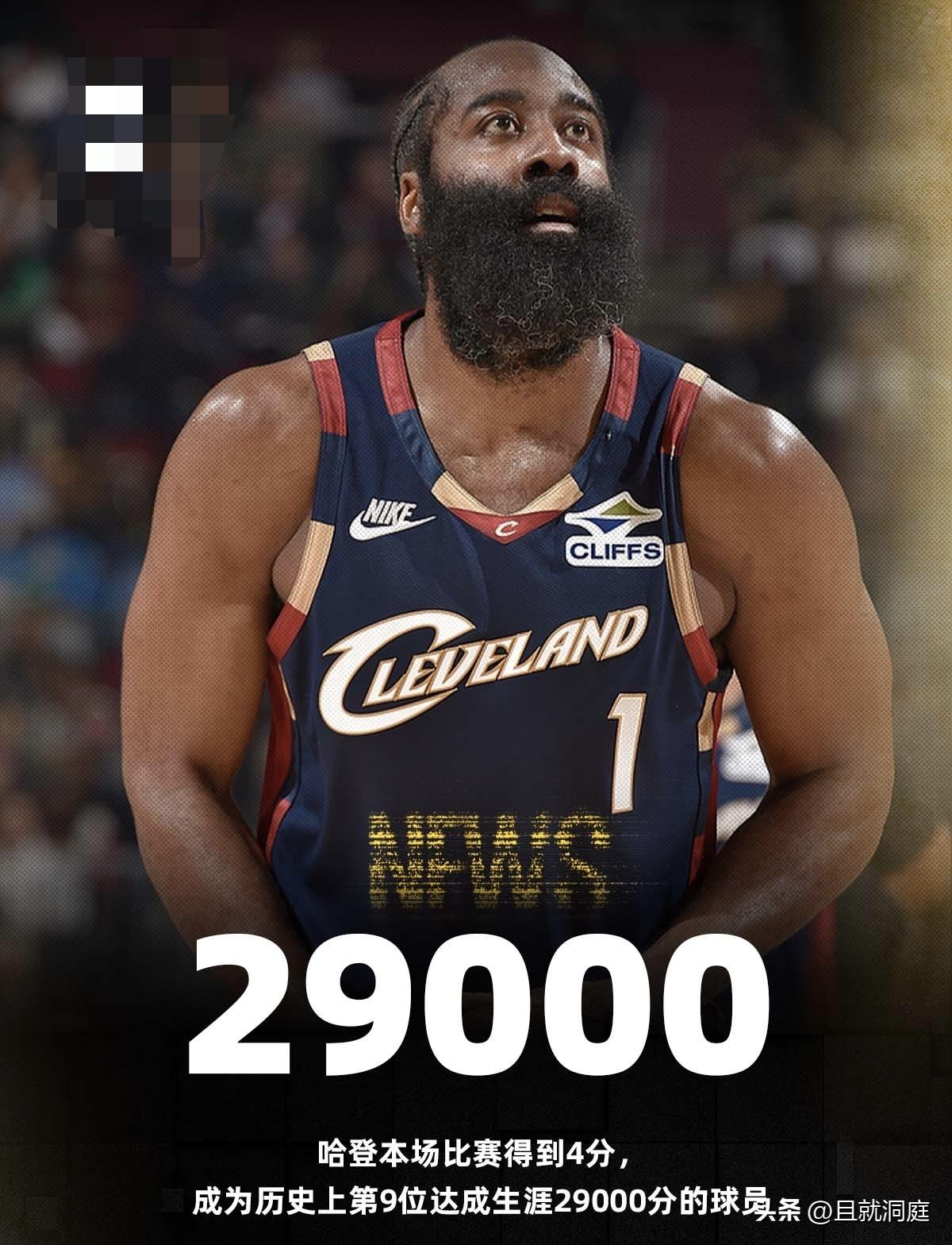 叫“詹姆斯”的都很厉害!恭喜哈登总得分突破29000分大关,排名NBA历史第九! 北京时间3月10日,NBA常规赛骑士主场对阵76人的比赛已经结束,最终骑士以115比101战胜76人。目前骑士战绩40胜25负排名东部第四,距离东部第一活塞差6个胜场差。 本场比赛骑士球星哈登得到21分5篮板5助攻1封盖,常规赛总得分达到29017分排名NBA历史第九位。 前面8位分别是詹姆斯、贾巴尔、卡尔-马龙、科比、乔丹、杜兰特、诺维茨基和张伯伦。 按目前哈登状态,退役时超过科比(33643分)排名历史第五是没有问题的,杜兰特肯定也会超过科比总得分大概率排名历史第四。