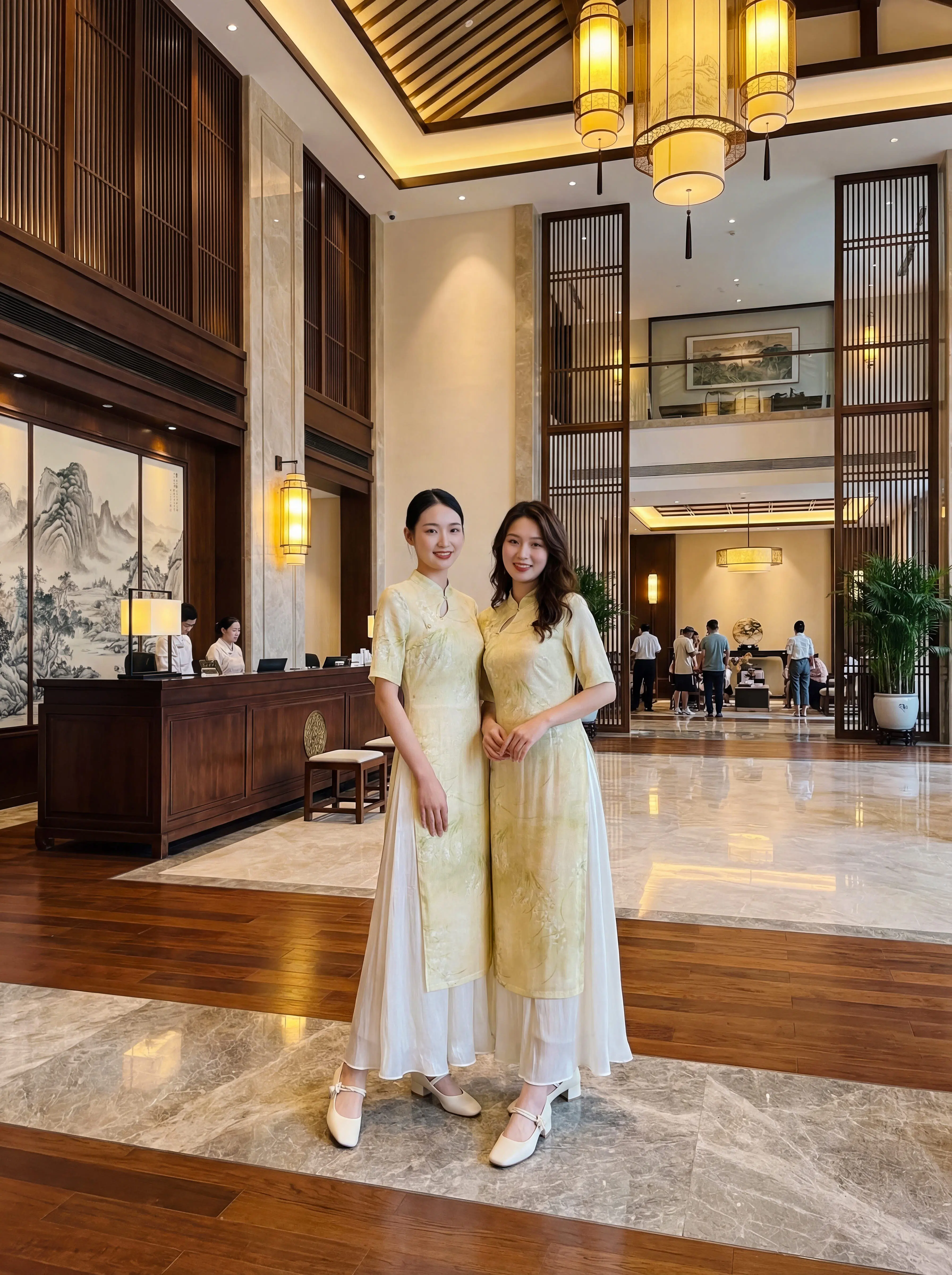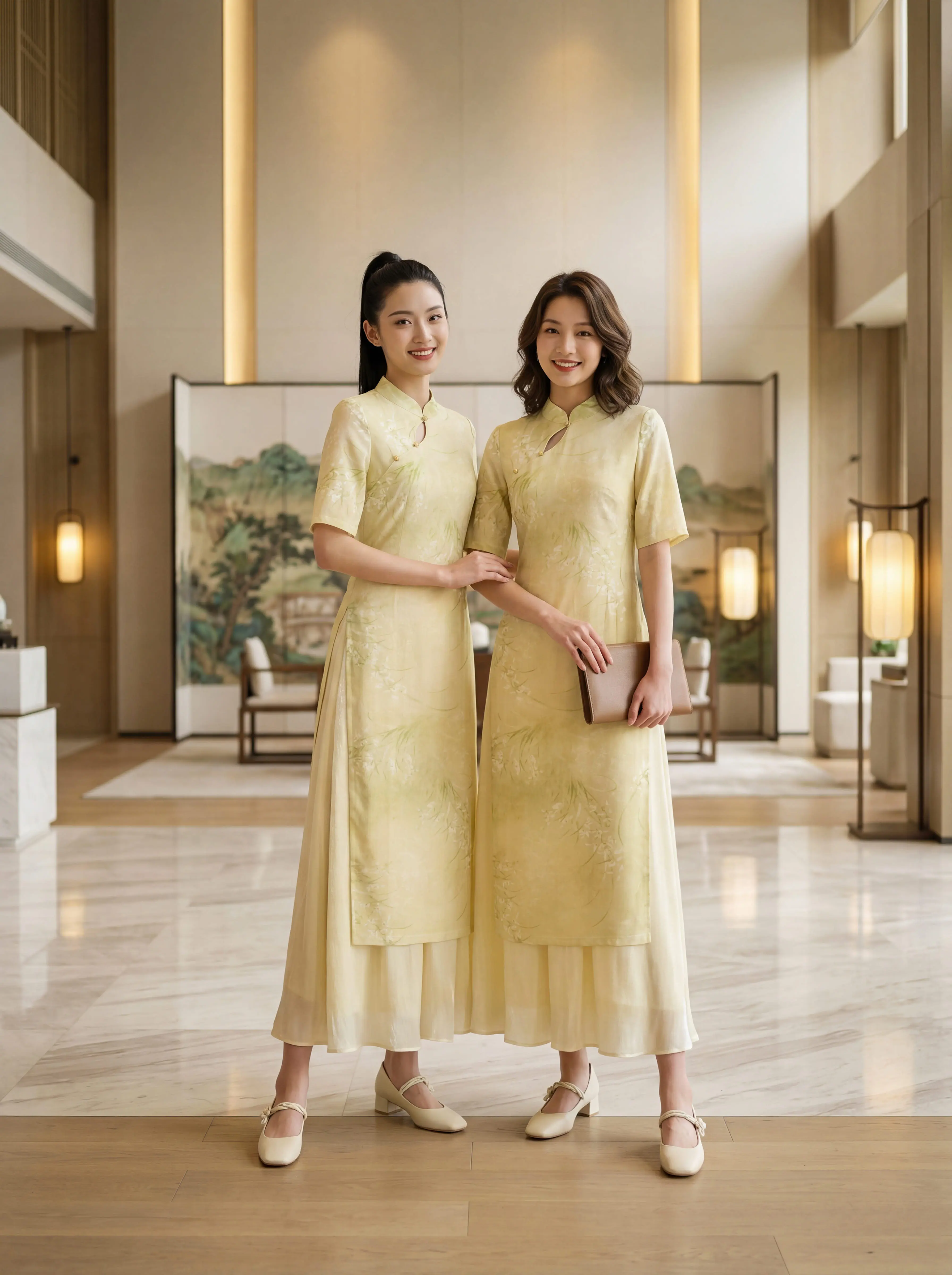 新中式也能轻松融入通勤日常!。棠越这件改良新中式真的太懂打工人了。淡黄绿色显白又不挑皮,立领设计修饰脖颈线条,水滴镂空又添了几分小心机。中袖和侧边开衩的剪裁,既保留了传统服饰的韵味,又不会显得过于正式。内搭的白色阔腿裤垂感超棒,走路带风,搭配一双浅口单鞋,通勤路上也能优雅满分。 不用费力搭配,一套出门,轻松拿捏职场氛围感~