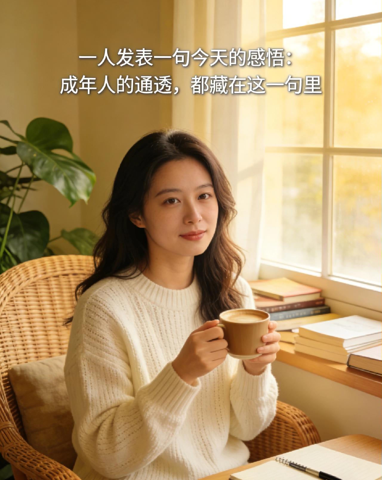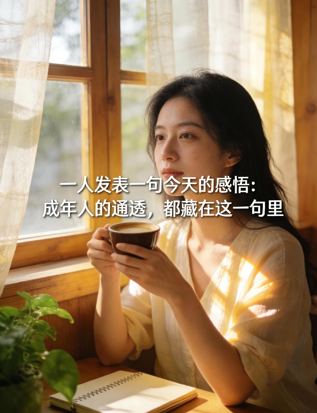 刷到这个话题时,我停了很久。不是文案多华丽,而是每一句,都像在说我们自己。 有人说:今天再大的事,到明天都是小事。我们总为未发生的焦虑,为已过去的内耗,熬夜纠结、反复内耗,却忘了生活最公平的规则——时间会稀释一切,你揪着不放的,早晚都会释怀。 有人写:能治愈你的,从来不是时间,而是释怀。成年人的崩溃,多是不肯放过自己。为一段错的关系执念,为一次失误自责,为别人的眼光委屈。其实放下不是认输,是把精力还给自己,把温柔留给值得的人。 还有人叹:日子是过给自己的,不是演给别人看的。我们习惯晒光鲜、藏狼狈,怕被说普通、怕被看不起。可真正的幸福,从不是朋友圈的点赞,是三餐安稳、家人安康、夜里睡得踏实。不用讨好所有人,舒服自在,才是顶配人生。 更戳心的是这句:把期待降低,把依赖变少,你会过得更好。期待越高,失望越重;依赖越多,越没底气。学会独立、学会自愈,才明白:安全感是自己给的,快乐也是。 这一句句感悟,没有大道理,全是生活的真相。我们都在跌跌撞撞中学会:不纠结、不内耗、不勉强;在平凡里找糖,在疲惫中自愈。 今天,你最想发表的一句感悟是什么?是释怀,是放下,还是重新出发?评论区留一句,给自己一个交代,也给陌生人一点温暖。 我先来:慢慢来,谁都有发光的一天。✨