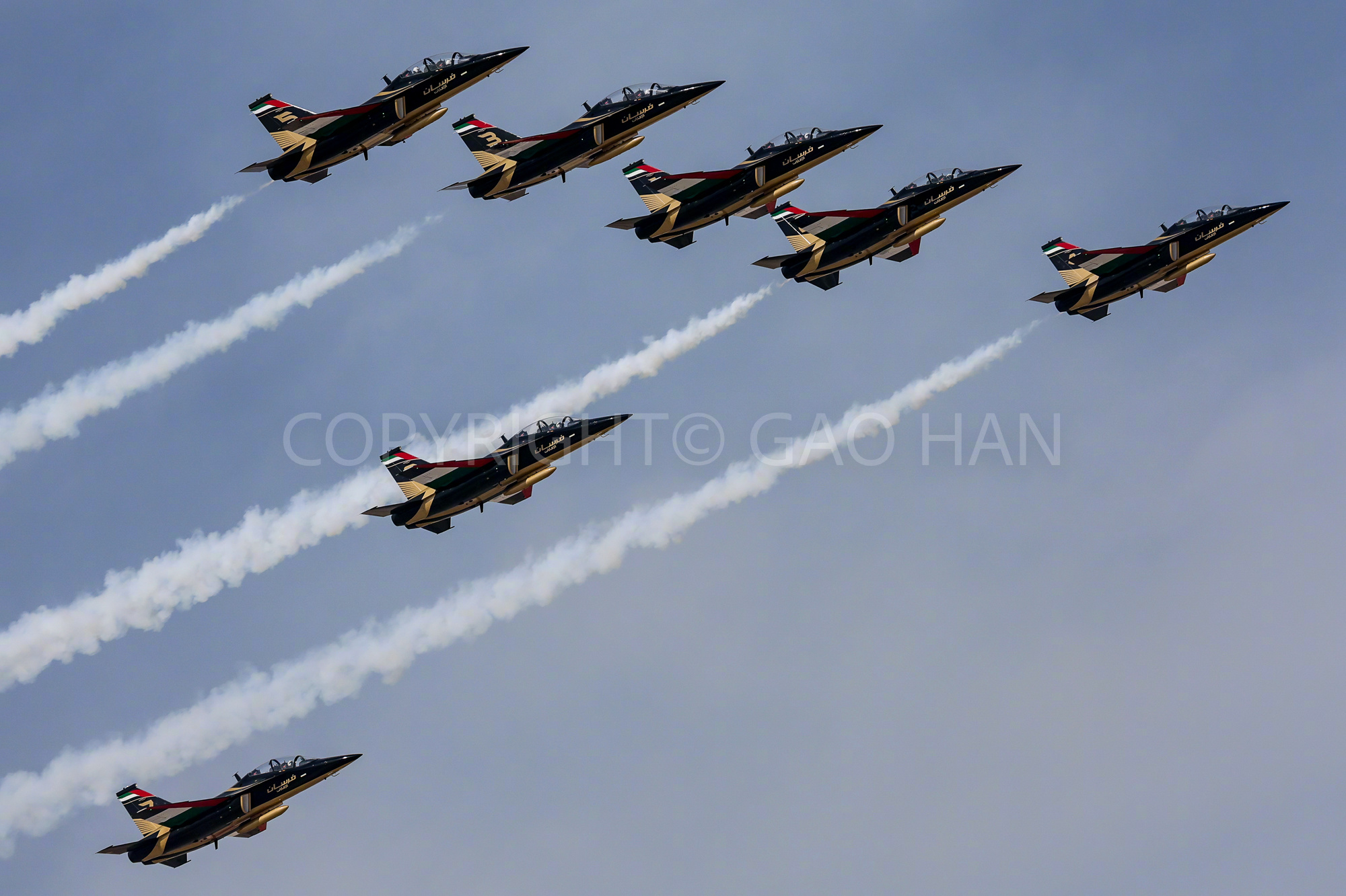 飞行员驾驶进行单机飞行表演,2025年则是由交付给阿联酋空军的阿联酋骑士团飞行表演队完成L-15A的首次7机公开亮相表演。2023年的涂装和上集偶遇看到的一样,但飞行表演时拉出黑烟,显得有点匪夷所思。而阿联酋骑士团把L-15A的性能表现得淋漓尽致,整场表演非常精彩,飞机涂装也很有当地特色。希望能在更多场合观看L-15的经常亮相!图一至图三:2023年迪拜航展L-15单机飞行表演图三至图十二“2025年迪拜航展阿联酋骑士团飞行表演队L-15/教-10图集完成,大家想看什么其它机型欢迎留言。航空君航空科普 航空创作计划 烽火问鼎计划 机身:EOS R3镜头:RF 100-300/2.8 L+RF 2X RF 200-800