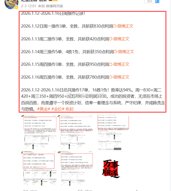 1月份 21 个交易日,布局 75 单策略,斩获 70 单盈利,仅 5 单亏损,胜率达 93%,累计盈利14910 点! 大波动中抓准趋势,大行情里坚定方向。真正的实力,从不是一时激进,而是临危不乱、从容有度。风度,是对品格的坚守;稳健,是对信任的回应。经得起行情考验,扛得住市场波动,日久见人心,专业更值得托付。