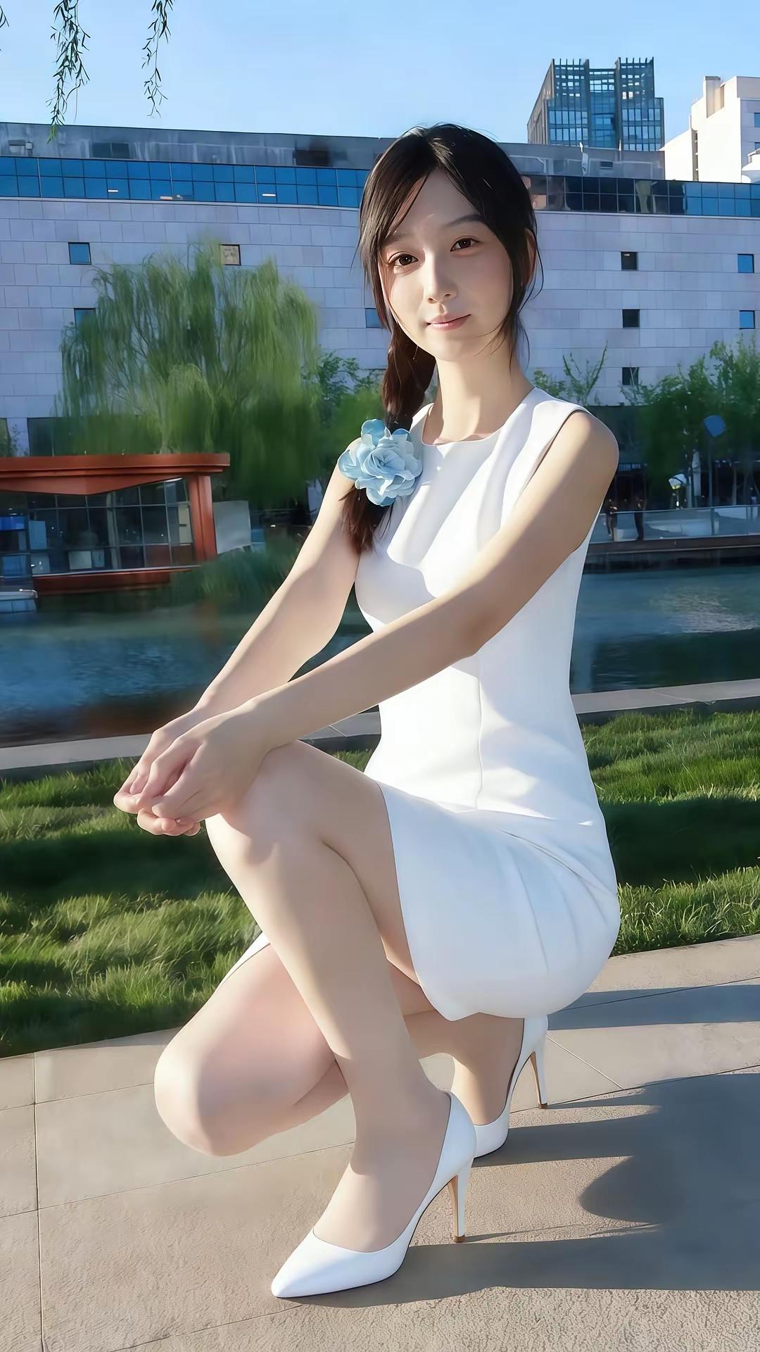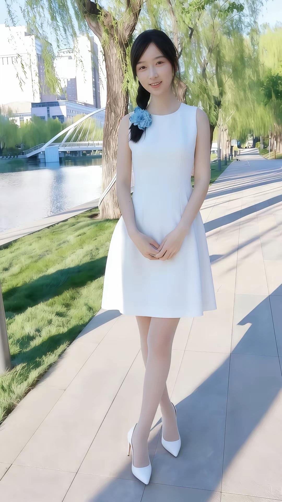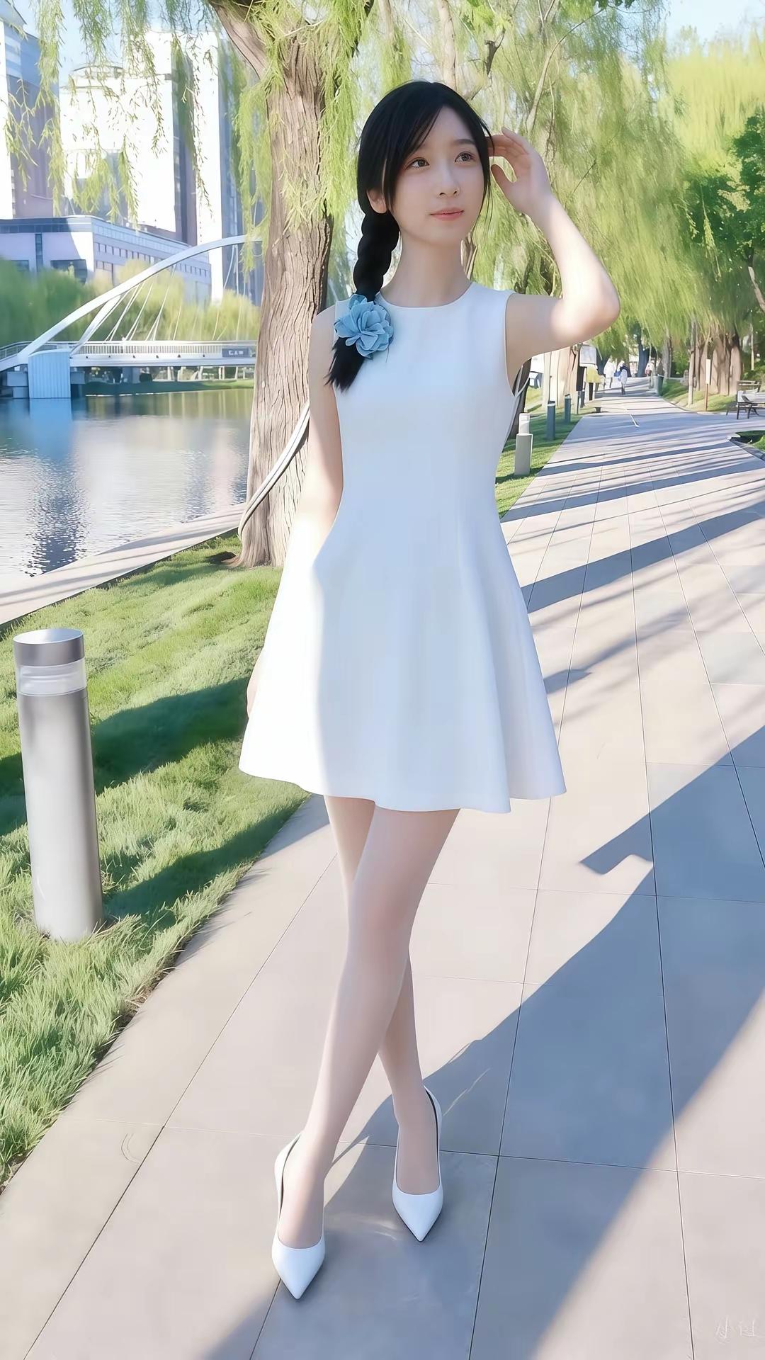 白衣飘飘,水边轻步。