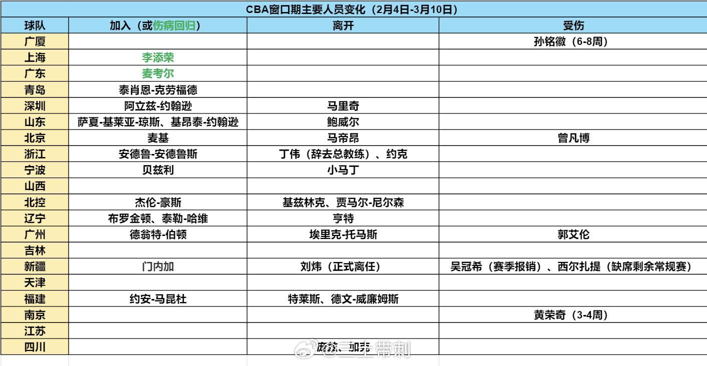 这个窗口期,20队都有哪些人员变化?以2月4日-3月10日官宣和已确定为准。