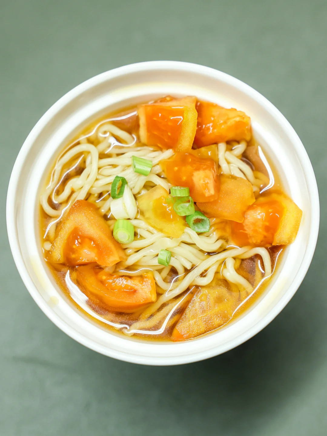 🍅番茄汤面,像回家有人给你煮好的那一碗。调味很简单,咸甜口,靠番茄的甜和汤头的咸,没有复杂码子。面很劲道弹牙,一口接一口。这碗面的感觉就像熬夜赶路回家,家里人煮好一碗面等你——很疗愈,适合当收尾。