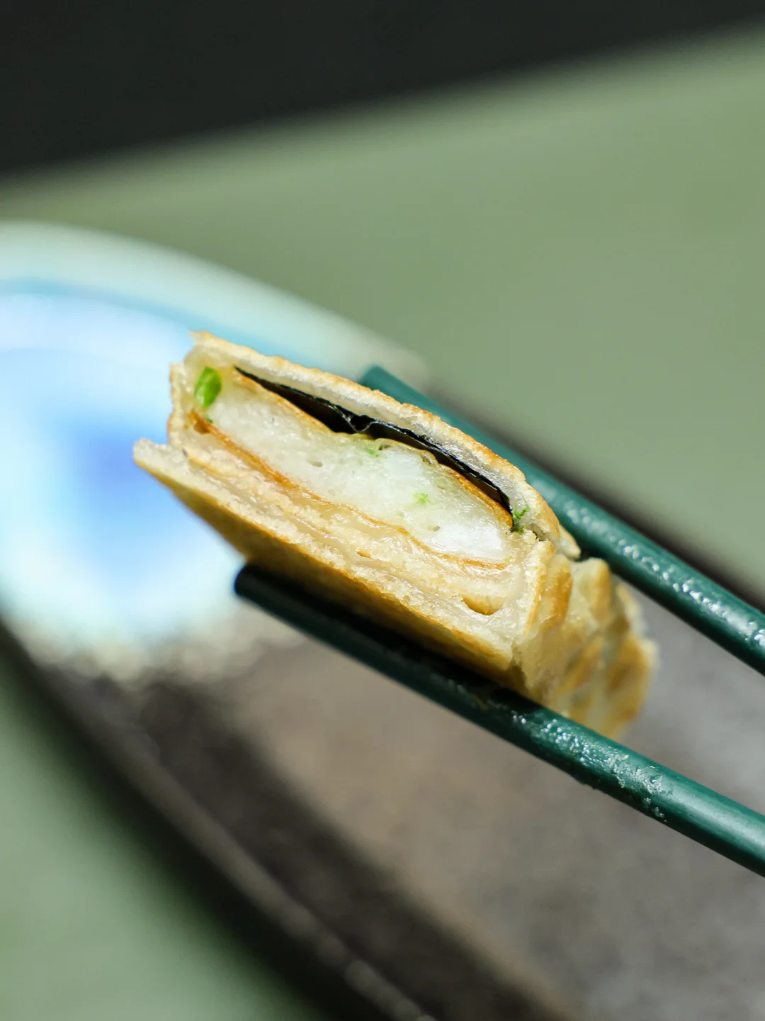 🥐沙琪玛薄餐,古早味拉满;薄餐就是煎过的糯米皮,外脆里糯。德点的沙琪玛蛋香很足,甜度没有包装沙琪玛那么齁,古早味明显,和薄餐搭在一起意外合拍;还有一款墨鱼饼薄餐,鲜味更突出,口味更重一点。
