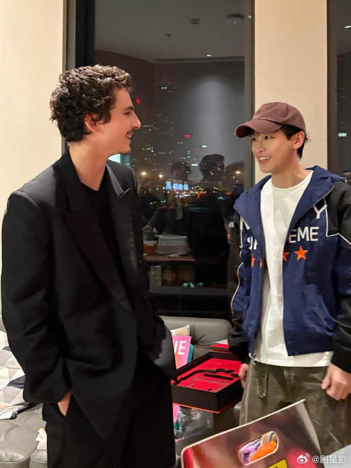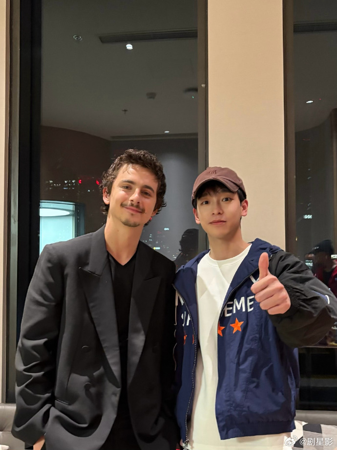 彭昱畅晒了和甜茶的合照 彭昱畅给到甜茶新电影一个夯👍,晒了两个人的合照了呀,真