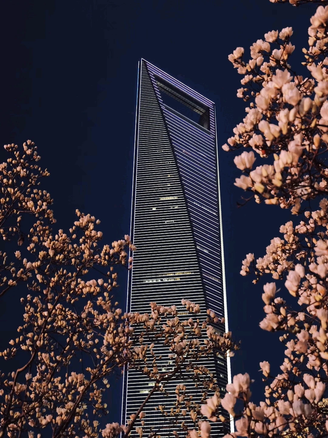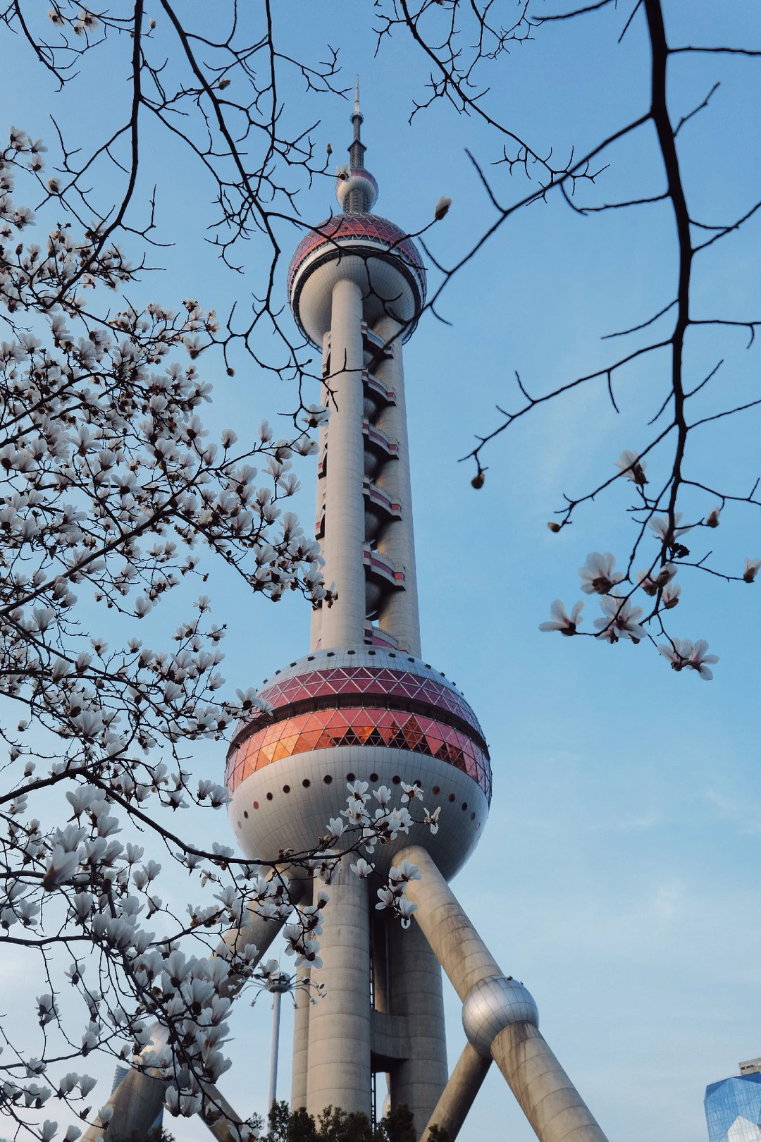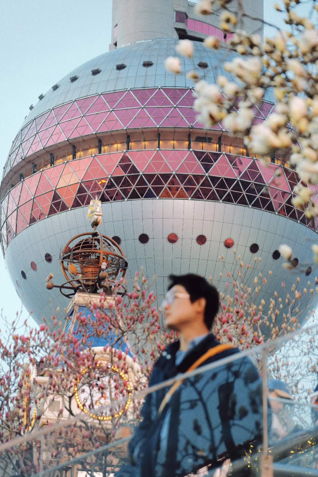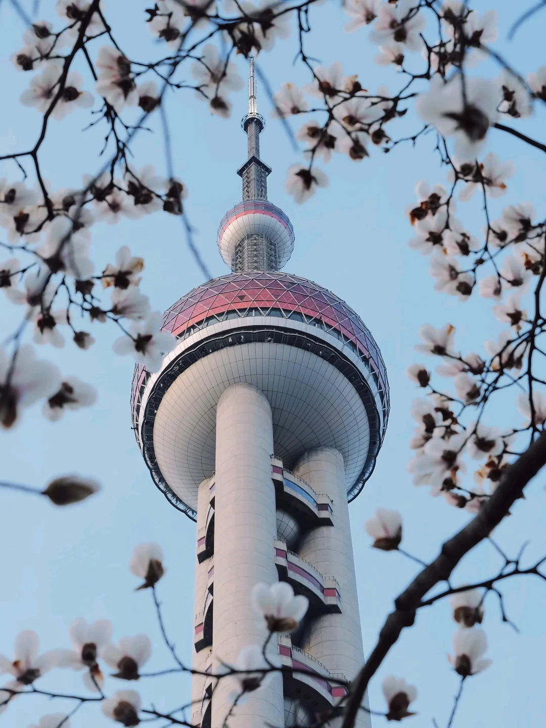 玉兰正好盛开,东方明珠灯光亮起的瞬间,美到失语。