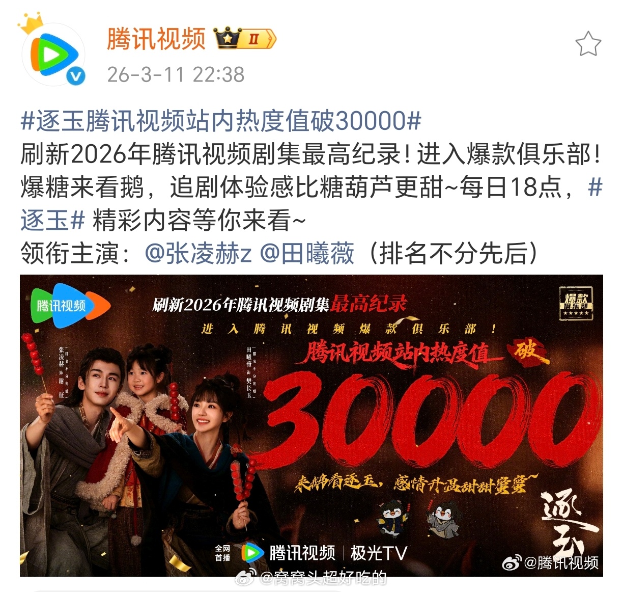 逐玉 首部双平台破万剧逐玉双平台破万