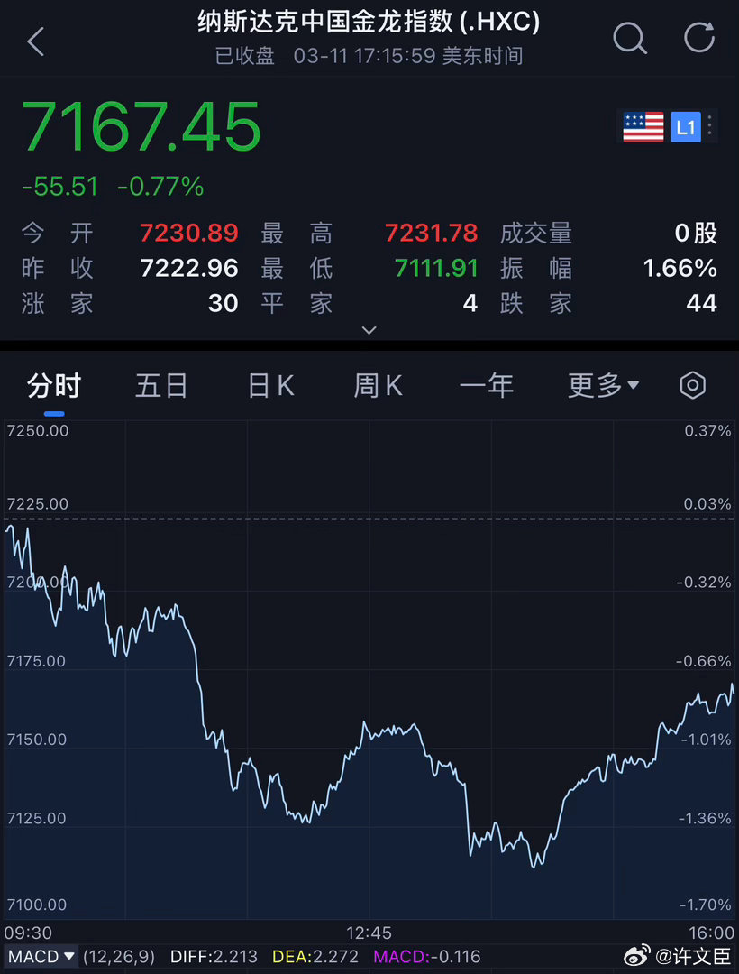 热门中概股多数下跌,纳斯达克中国金龙指数跌0.77%。
