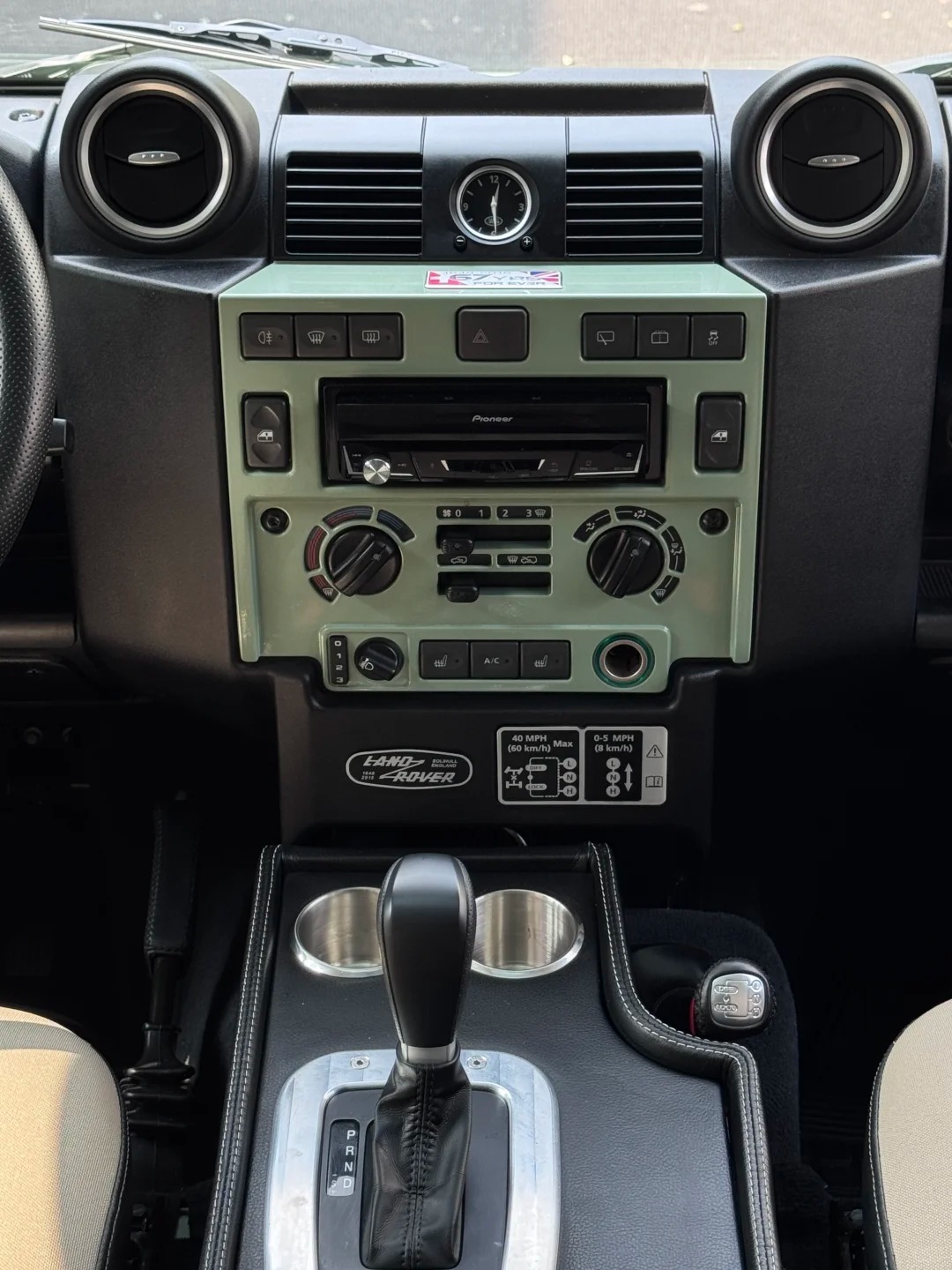 好车分享 路虎卫士传承版,这台是真传承,不是自己改的,改装了自动挡,这还是老一代的自动挡套件,鞍座部分比较丑比较突兀,不如新一代的好看,新一代不知道的会以为是原厂设计的,跟中控融合更完美,当然这玩意也能还原回手动挡,毕竟卫士结构很简单,装饰也少,各种改装对车的破坏就比较小。