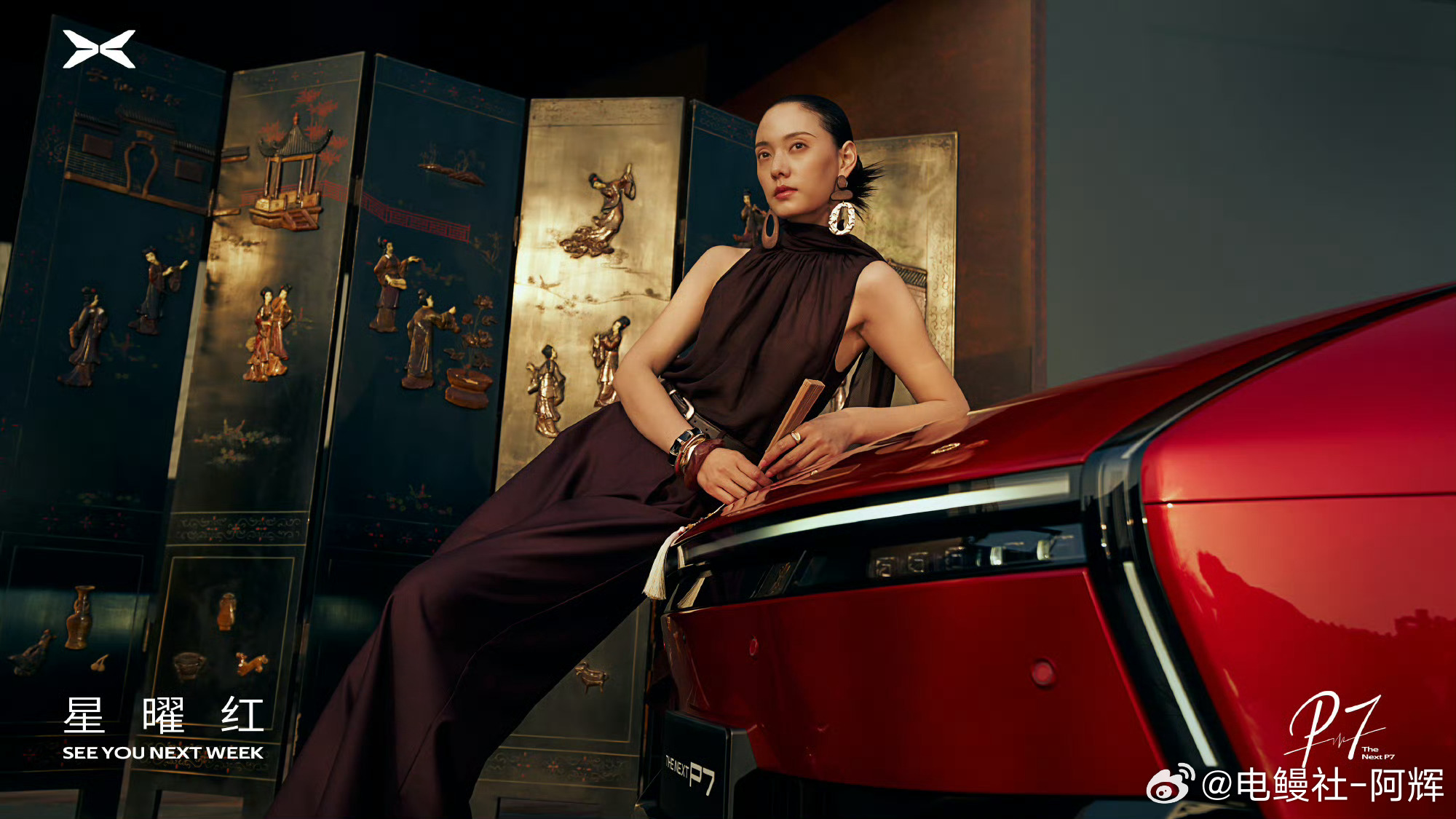 小鹏P7新色发布定档3月18日大v聊车 小鹏p7一个新颜色就开一个发布会? 这个颜色有点中国红了,骚气的颜色加上先锋的外观等于什么🤔