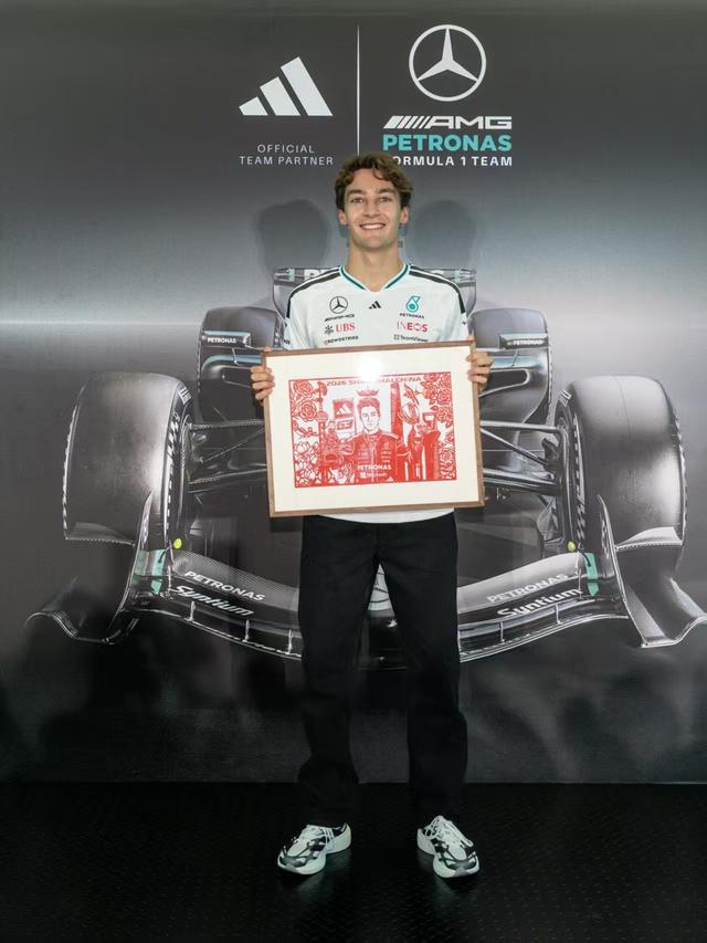 拉塞尔收到了来自中国车迷特别制作的剪纸礼物。