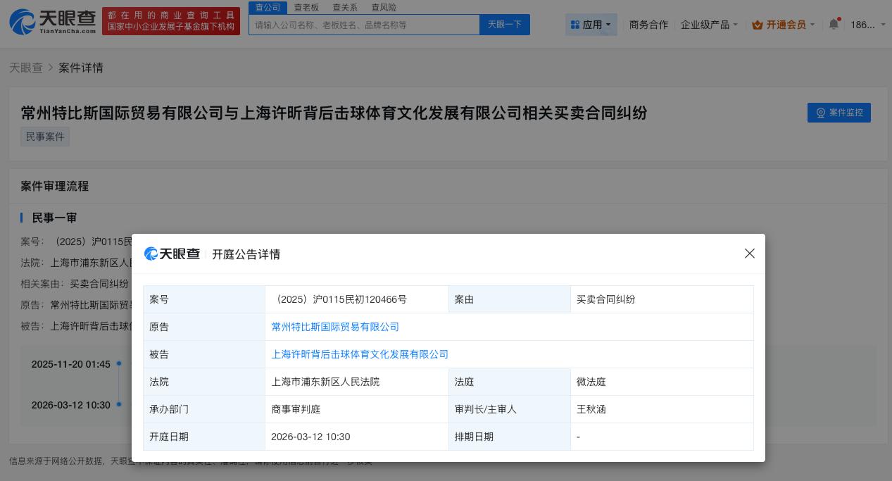 许昕公司被告 许昕公司因买卖合同纠纷被告 天眼查天眼风险信息显示,近日,Xuperman关联公司上海许昕背后击球体育文化发展有限公司新增1则开庭公告,原告为常州特比斯国际贸易有限公司,案由为买卖合同纠纷,该案将于3月12日在上海市浦东新区人民法院开庭审理。 上海许昕背后击球体育文化发展有限公司成立于2022年12月,法定代表人为姚彦,注册资本100万人民币,经营范围包括体育场地设施经营、食品销售、酒类经营等。股东信息显示,该公司由上海许昕体育文化发展有限公司全资持股。最终受益人信息显示,该公司实际控制人为许昕。 天眼查信息:
