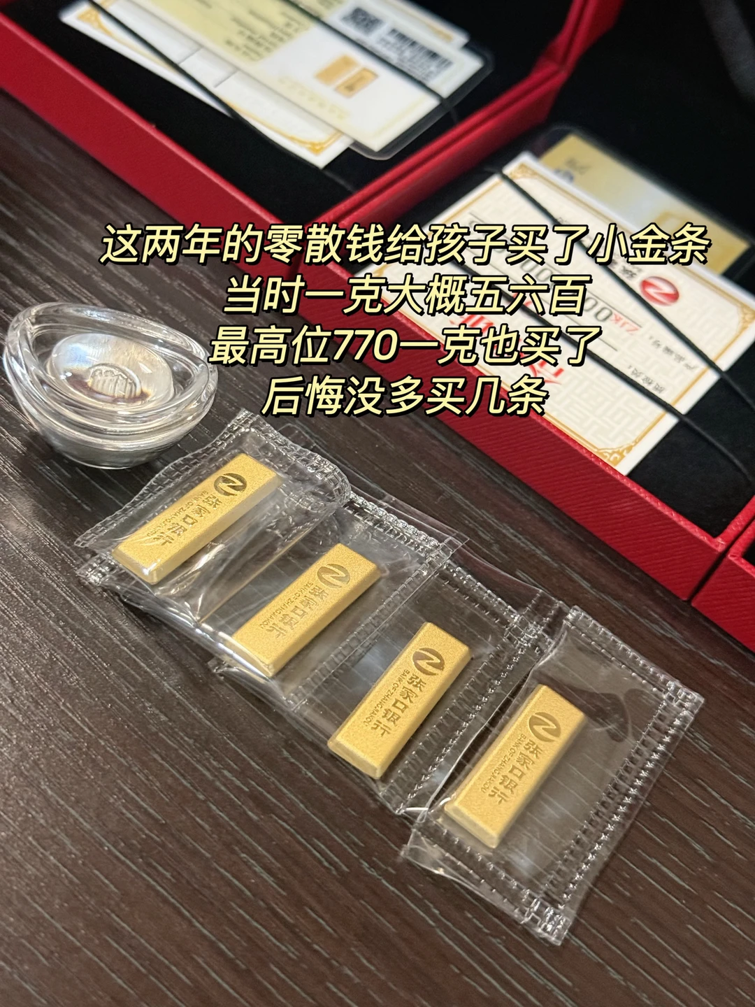 我前些年有意识地想要花钱买些碎金,当时一克大概五六百,每次想要买东西的时候我就去买点小碎金,攒着攒着也攒了一些,昨天金价一千多,我出手一千多卖掉,接近翻倍赚了,买可以潜在升值的东西,比那些贵重物品强