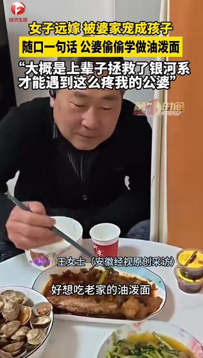 “太暖了!”近日,江西南昌,一女子远嫁,她的公婆平时对她就很好,最近,女子随口说了句想吃油泼面,没想到公婆竟然偷偷去学,做好后便端上桌让她尝尝,女子十分感动,觉得自己上辈子拯救了银河系,才遇到这么好的公婆!网友:太羡慕了! 王女士无疑是幸运的那一个,远嫁的她不仅赌对了老公,更遇到了把她宠成亲闺女的公婆。 王女士是远嫁来南昌的,当初决定嫁过来的时候,身边不少朋友都劝她,说远嫁他乡,没了娘家的依靠,万一受了委屈都没人撑腰。 可王女士还是铁了心,因为她知道,老公靠谱,公婆更是难得的实在人。 如今嫁过来几年,她从来没有后悔过自己的选择,而且每天都被公婆的疼爱包围着。 王女士平时就被公婆照顾得无微不至,有时候王女士加班,提前在家庭群里说一声,公婆就会一直等她,饭菜凉了就一遍遍放进蒸锅里热着,从来不会催她,也不会抱怨她回来得晚。 有一次她加班到很晚,进门的时候以为家里早就熄灯了,没想到客厅的灯还亮着,婆婆正坐在沙发上打盹,桌上的饭菜用保温罩盖着,掀开的时候还冒着热气。 婆婆听到动静醒过来,揉了揉眼睛笑着说,知道你饿了,快吃吧,都是你爱吃的。 有时候王女士不好意思,说自己能照顾好自己,公婆就会笑着说,你离家这么远,爸妈不在身边,我们不疼你谁疼你。 这份毫无保留的疼爱,让王女士心里暖暖的,有时候跟老家的爸妈视频,说起公婆对自己的好,说着说着就会红了眼眶,爸妈也放心地说,看到你被这么疼爱着,我们就不用担心了。 前段时间,王女士下班回家,吃着婆婆做的饭菜,随口说了一句,好想吃老家的油泼面,好久没吃到了,那种热油泼在辣椒面上的香味,想想都流口水。 当天晚上,王女士睡下之后,公婆就坐在客厅里小声商量,婆婆说,咱们虽然不会做,但不能让她委屈了,咱们得学着做,给她一个惊喜。 公公也连连点头,说对对对,儿媳远嫁过来不容易,想吃点老家的味道,咱们再难也要学会。 老两口就这样拿着手机,一点点摸索着找油泼面的做法,婆婆一遍遍地看教程,把步骤一条条记在纸上,生怕记漏了一个细节。 公公就在旁边陪着她,帮她查不明白的地方,两个人对着手机研究到深夜,还在小声讨论着。 第二天,公公特意去了菜市场,按照教程上的要求,买了各种食材。 第一次做,两个人都有些手忙脚乱。 醒好面之后,婆婆学着教程上的样子,把面团擀成厚饼,切成宽条,然后用手轻轻拉扯,可面条总是扯不匀,要么太粗,要么一扯就断,试了好几次都没成功。 婆婆急得满头大汗,还念叨着,怎么这么难啊。 公公在旁边安慰她,实在不行,咱们再看一遍教程。 说着,两个人又重新看了一遍教程,一步步跟着学,扯面的时候,公公扶着面条的一端,婆婆扶着另一端,慢慢拉扯,终于做出了粗细均匀的面条。 公公在旁边烧着油,眼睛紧紧盯着锅里的油,直到油烧到冒烟,他才关火,晾了几秒钟,然后端起锅,快速对准碗里的配料泼下去。 可第一次做的油泼面,味道还是有些不尽如人意,公婆尝了一口,都皱起了眉头。 就这样,老两口又重新做了一遍,这次吸取了上次的教训,做好之后,两个人又尝了一口,这次味道刚刚好,香气浓郁,筋道爽滑。 王女士下班回家,一进门就闻到了浓郁的香味,跟她老家油泼面的香味一模一样,她愣了一下,以为自己闻错了。 直到公婆端着一碗油泼面从厨房里走出来,笑着对她说,儿媳,你不是想吃油泼面吗,我们学着做了,你尝尝,看看合不合口味。 王女士看着那碗油泼面,上面撒着翠绿的葱花和雪白的白芝麻,香气扑鼻,瞬间就红了眼眶,眼泪忍不住掉了下来。 她拿起筷子,轻轻拌了一下,每一根面条都裹满了红油酱汁,放进嘴里,筋道爽滑,香辣适中,还有淡淡的醋香和解腻的青菜,就是她老家的味道,跟她小时候吃的一模一样。 她一边吃,一边掉眼泪,不是难过,是感动,是那种被人放在心尖上疼爱的感动,她从来没有想过,自己随口说的一句话,公婆竟然这么放在心上,还特意偷偷学着做。 王女士一边吃,一边跟公婆说,太好吃了,就是这个味道,谢谢爸,谢谢妈。 公婆看着她吃得开心,脸上也露出了笑容,公公婆婆笑着说,好吃就多吃点,以后你想吃了,我们就给你做,虽然我们做得不如你老家的正宗,但我们会慢慢学,直到你满意为止。 那天,王女士把那满满一大碗油泼面,吃得干干净净,在这期间她还忍不住拿出手机,拍了照片和视频,发到了网上。 有网友说:“远嫁最幸运的事,就是遇到这样通情达理的公婆,不用受委屈,不用小心翼翼,这种被疼爱的感觉,真的太让人羡慕了。” 也有网友说:“看哭了,作为一个远嫁的姑娘,太能体会这种感觉了,被公婆放在心上,比什么都重要。” (信息来源:AHTV第一时间《女子远嫁被婆家宠成孩子,随口一句话,公婆偷偷学做油泼面,“大概是上辈子拯救了银河系,才能遇到这么疼我的公婆”》)