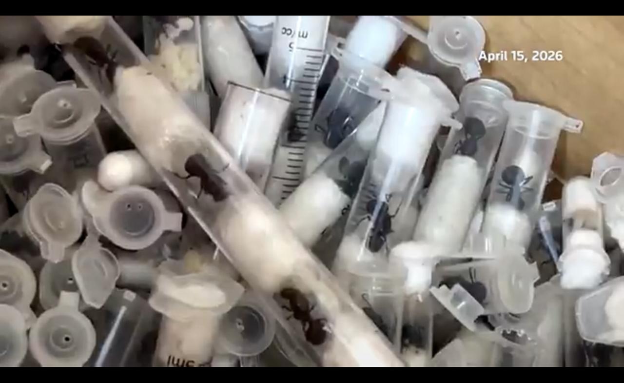 据路透社报道,中国籍男子张克群(Zhang Kequn)在乔莫·肯雅塔国际机场(Jomo Kenyatta International Airport)被捕,当时他正试图携带2200多只活的园蚁离开肯尼亚。与此同时,非洲国家肯尼亚的昆虫走私案件也在增加。 视频显示时间为2026年4月15日?难道是摄像设置时间错误,还是穿越?