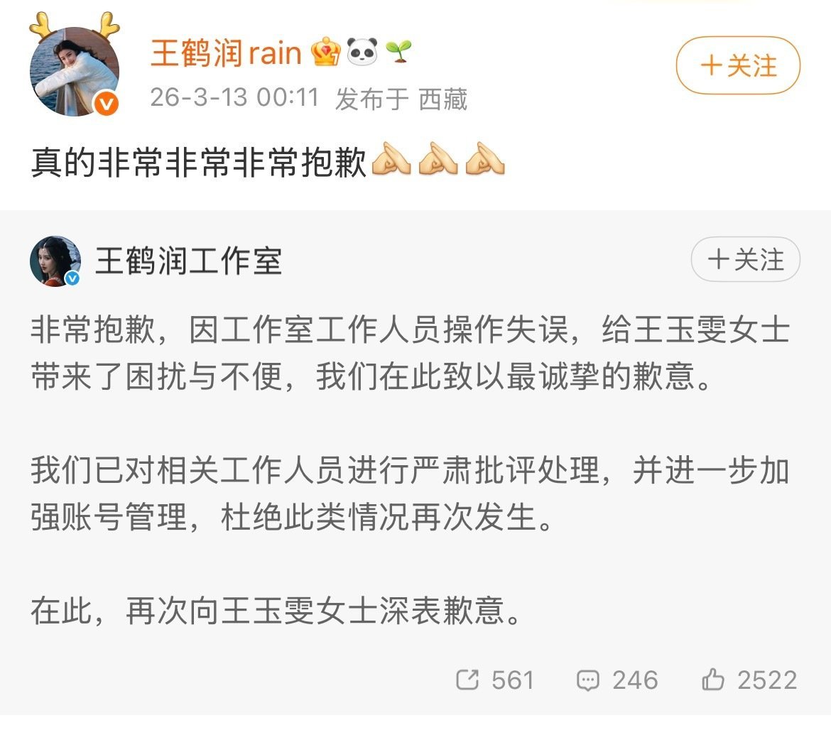 王鹤润道歉又是打工人背锅,作为公众人物应该注意自己的言行吧