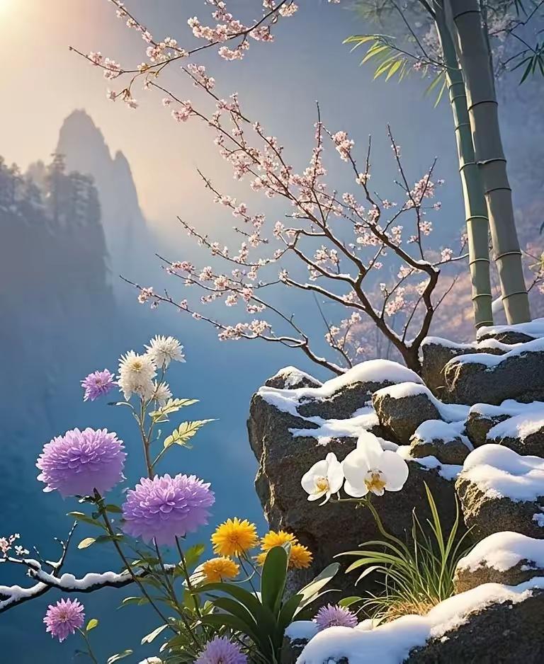 柴米油盐吃三顿, 梅兰竹菊香九洲。 横批:《吃三顿与香九洲》