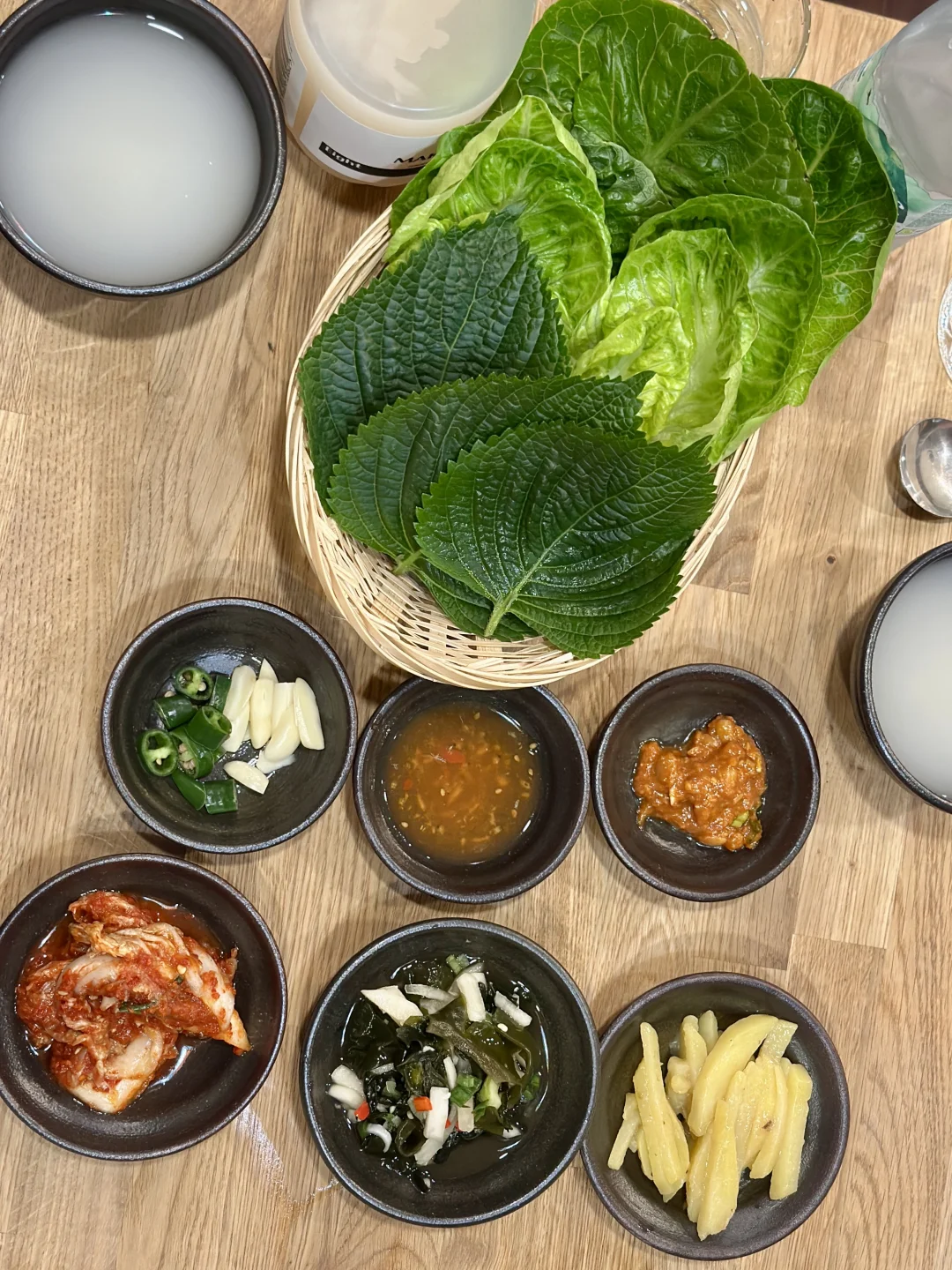 惯例,上来就是一堆小菜和生菜叶子&一碗豆芽大酱汤用来解腻。点了一半经典一半BBQ的双拼猪脚。好吃!一点也没有猪臊味!猪皮胶原质感duangduang的!最后没吃完还打包带走了🤣