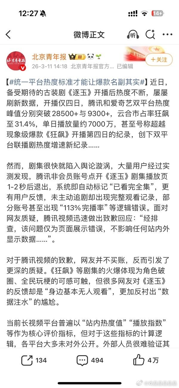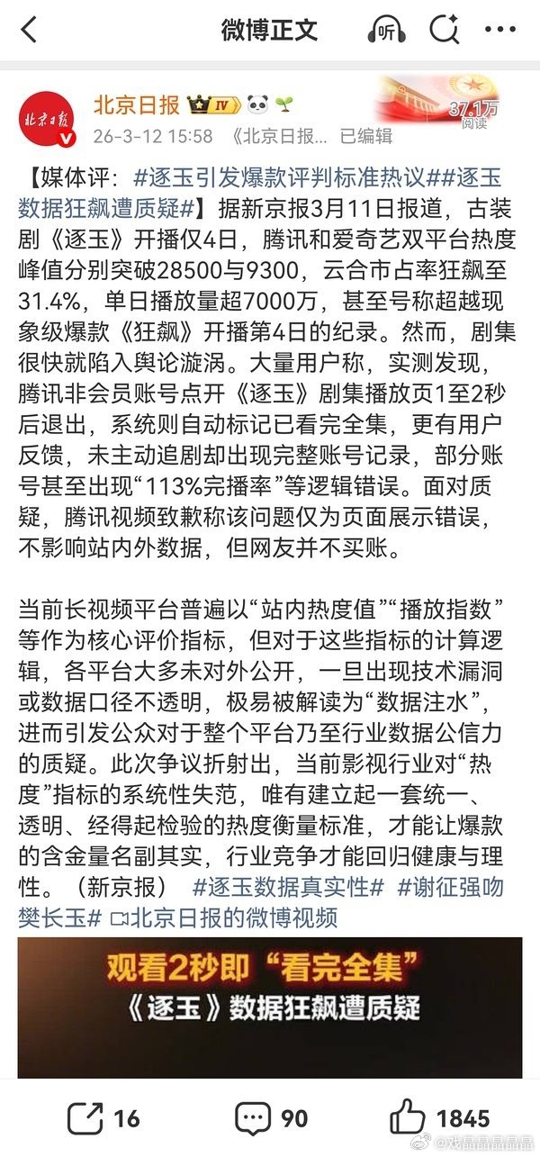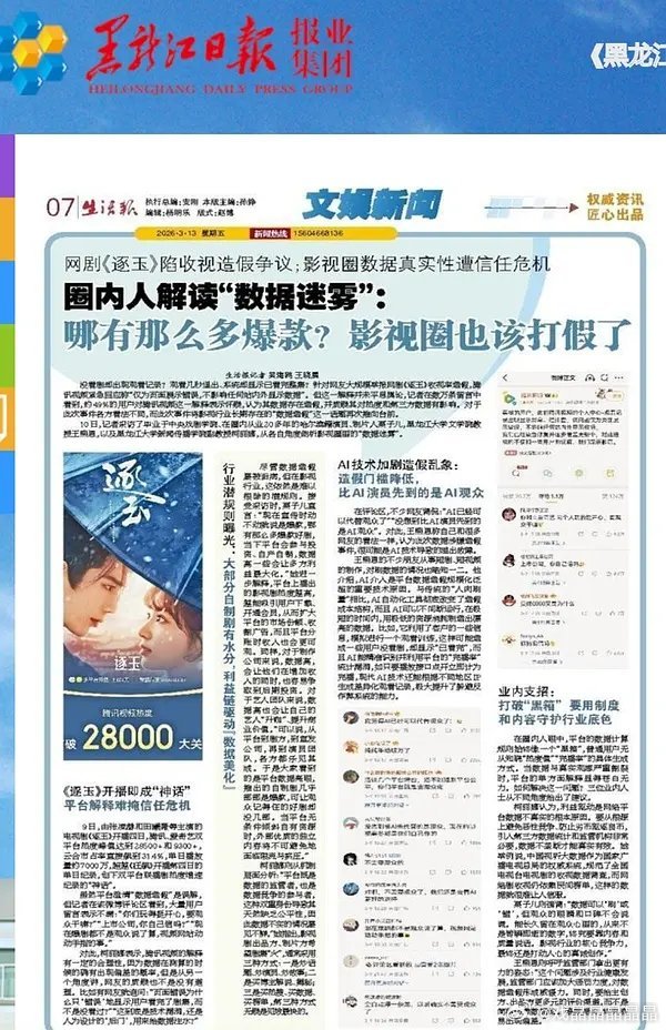 目前有15家媒体报道了逐玉涉嫌数据造假,造成长视频平台的信任危机,包括:新京报、北京日报、北京青年报、南方日报、钱江晚报、华夏时报、黑龙江日报、新加坡联合日报、vista看天下(宁夏日报)、都市现场(江西广播电视台)、河北新闻网、齐鲁晚报、光明网、封面新闻(四川日报)。