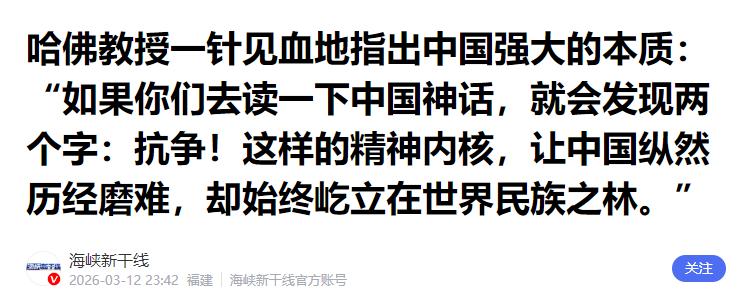 马斯克再次严正发声:“美国永远无法战胜中国!”哈佛教授指出“根本原因”,一针见血!他说:“如果你们去读一下中国神话,你就会发现,只有两个字:抗争!这样的精神内核,让中国纵然历经磨难,却始终屹立在世界民族之林。”一语中的,振聋发聩! 马斯克早在2020年,美国空军协会的空军作战研讨会上,就有空军中将问他,美国怎么才能在军事上超过中国,马斯克当场就直言,美国不可能打败中国,因为中国的经济未来会达到美国的两到三倍,这话当时就让现场安静了下来。 马斯克解释得很实在,中国人口是美国的四倍,虽然现在人均GDP还在追赶,但按照现在的发展趋势,中国的经济体量迟早会超过美国,甚至达到美国的两三倍。 而且中国的工业链特别完整,不管是高铁、新能源汽车,还是各种工业产品,都能自己生产,出口到全世界;反观美国,很多基础设施都老化了,高铁项目拖了很多年都没进展,很多产品都依赖进口。 还有军费使用,中国的军费虽然比美国少,但使用效率高,能快速建造海军舰艇、更新空军装备,而美国的军费里,有不少花在了高价采购上,真正用在创新和装备升级上的并不多。这些都是马斯克亲眼看到的现实,所以他才敢坚定地说,美国永远无法战胜中国。 而那位哈佛教授说的“抗争”精神,更是说到了中国的根上。咱们中国人从小就听女娲补天、夸父追日、精卫填海的神话故事,这些故事不是瞎编的,藏着中国人骨子里的精神。 天破了,女娲没有等着天自己好,而是炼石补天,拯救天下百姓;夸父想要追逐太阳,不怕劳累,一直奔跑,直到生命的最后一刻;精卫被海水淹死,却不甘心,变成小鸟,天天衔着石头、树枝,想要把大海填平。 这些故事告诉我们,中国人从骨子里就不向困难低头,遇到磨难,不是逃避,而是拼尽全力去抗争,去改变命运。 这种抗争精神,不是神话里才有的,而是刻在中国人的血液里,贯穿了中国的整个历史,每一段真实的历史,都能看到这种精神。 1840年鸦片战争以后,西方列强入侵中国,中国陷入了半殖民地半封建社会,国家蒙辱、人民蒙难、文明蒙尘,列强瓜分我们的土地,掠夺我们的财富,把我们当成“东亚病夫”欺负。 但中国人没有屈服,没有认命,而是开始了抗争,从辛亥革命到抗日战争,无数中国人前赴后继,不怕牺牲,就是为了争取国家独立、民族解放。 现在中国发展得越来越好,但依然面临着很多挑战。国外有些国家不想看到中国强大,想方设法打压我们,在科技领域封锁我们,在贸易领域制裁我们,想要阻碍我们的发展。但中国人从来没有被吓倒,依然保持着抗争精神,坚持自主创新,突破了一个又一个技术难关。 我们的高铁里程超过四万公里,位居世界第一;我们独立建成了空间站,实现了中国人的飞天梦想;我们的C919大飞机投产,打破了国外的垄断;我们打赢了脱贫攻坚战,用八年时间让近一亿农村贫困人口全部脱贫,这在世界上都是从来没有过的壮举。 这些成就的取得,都离不开中国人的抗争精神。这种精神,不是好斗,而是不向困难低头,不向强权屈服,是为了更好地守护我们的国家,守护我们的生活。 马斯克之所以说美国永远无法战胜中国,就是因为他看到了中国人骨子里的这种精神,看到了中国的发展速度和潜力。哈佛教授说得对,这种抗争精神,是中国的精神内核,让中国不管经历多少磨难,都能重新站起来,始终屹立在世界民族之林。 现在,我们的国家越来越强大,老百姓的生活越来越幸福,但我们不能忘记,这一切都是靠中国人一代代抗争换来的。马斯克的话,不是吹捧,而是客观事实;哈佛教授的话,一针见血,点出了中国强大的根本原因。 不管遇到什么挑战,中国人都会继续带着这种抗争精神,脚踏实地,努力奋斗,让我们的国家变得更加强大,让任何国家都不敢再欺负我们。这就是中国的底气,这就是中国人的骨气,也正是因为这样,美国永远无法战胜中国。