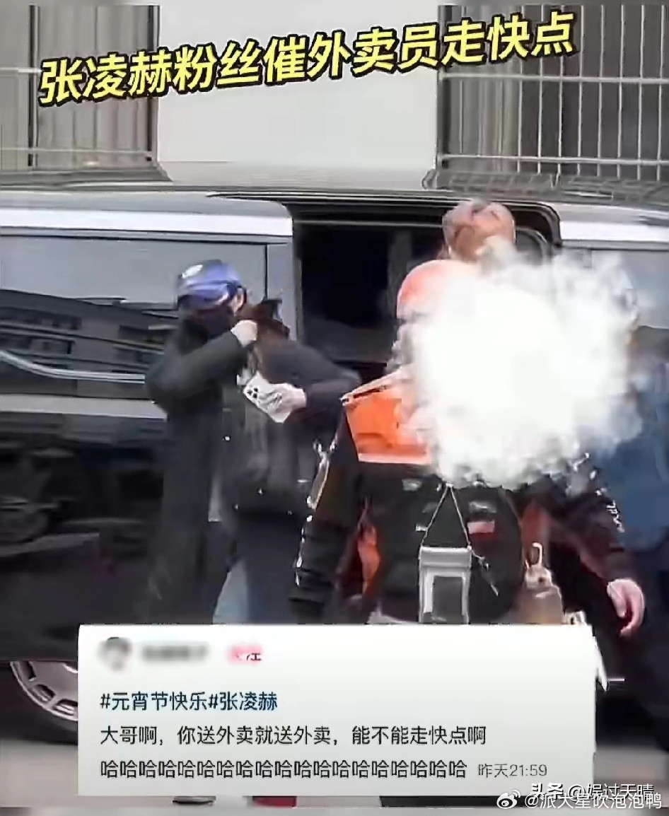 张凌赫从保姆车上下来时,一个送外卖的大哥一瘸一拐从他车前走过,不少粉丝立刻不满大