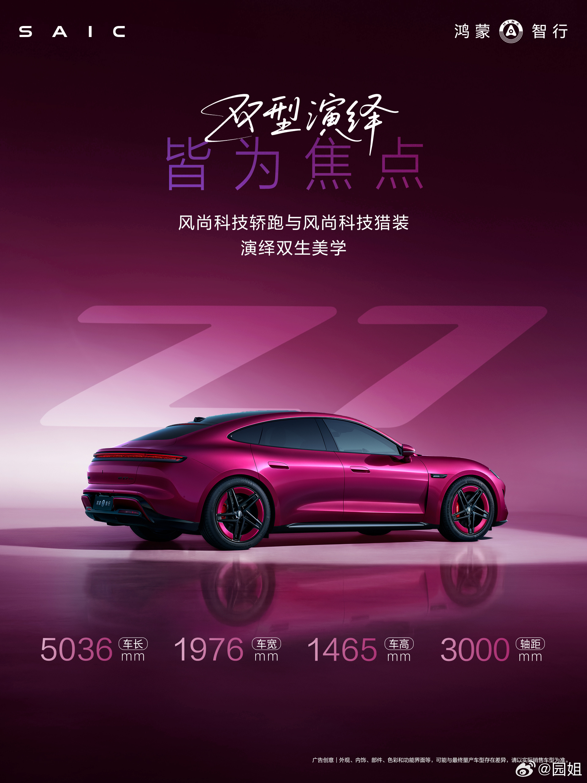 #尚界Z7工信部公示#尚界Z7&Z7T双车工信部申报信息同步公示,新车车长为5036mm,轴距3000mm,全系标配华为巨鲸电池,兼顾长续航和高安全,同时搭载途灵平台,提供多种车色、轮毂以及后驱/四驱两种驱动形式可选,这么看还挺好看哈,很适合年轻人~#尚界Z7轿跑猎装双车同步公示#