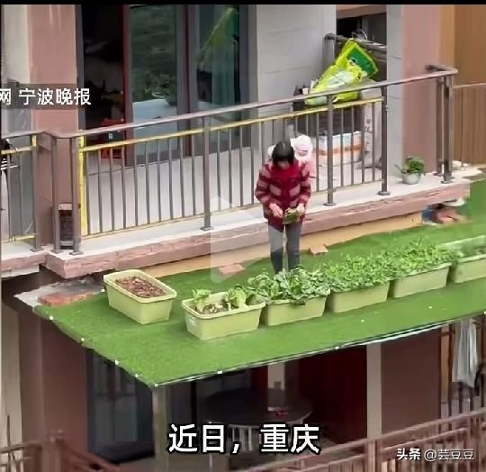 天呐,吓出一身冷汗!重庆老太5楼雨棚种菜,还背娃站上去浇水,看完浑身发麻,这哪是种菜,简直是拿性命开玩笑! 重庆一位居家带娃的老太太,为了省点空间、吃上自己种的菜,居然在5楼阳台做出了让人胆战心惊的操作: 她把阳台栏杆改装开了个小铁门,直接在楼下的雨棚上摆了9个装满土的塑料盆,种满了菜苗。 更可怕的是,支撑雨棚的只有几根细细的空心铁柱,承重本来就有限,老太太还经常背着孩子踩在雨棚上浇水、除草! 每多踩一步,都是在赌命! 一旦铁柱撑不住、雨棚断裂,老人+孩子从5楼坠落,后果不敢想! 那些沉甸甸的花盆一旦掉落,砸到楼下路人,也是一条人命! 想吃菜可以买,想种菜可以选安全的地方, 可生命只有一次,哪能这么儿戏? 省一点点菜钱,冒天大的风险, 真的不值啊! 家里有老人的一定要多提醒, 安全永远比省钱重要一万倍! 你身边有这种为了省钱、图方便,不顾安全的老人吗?