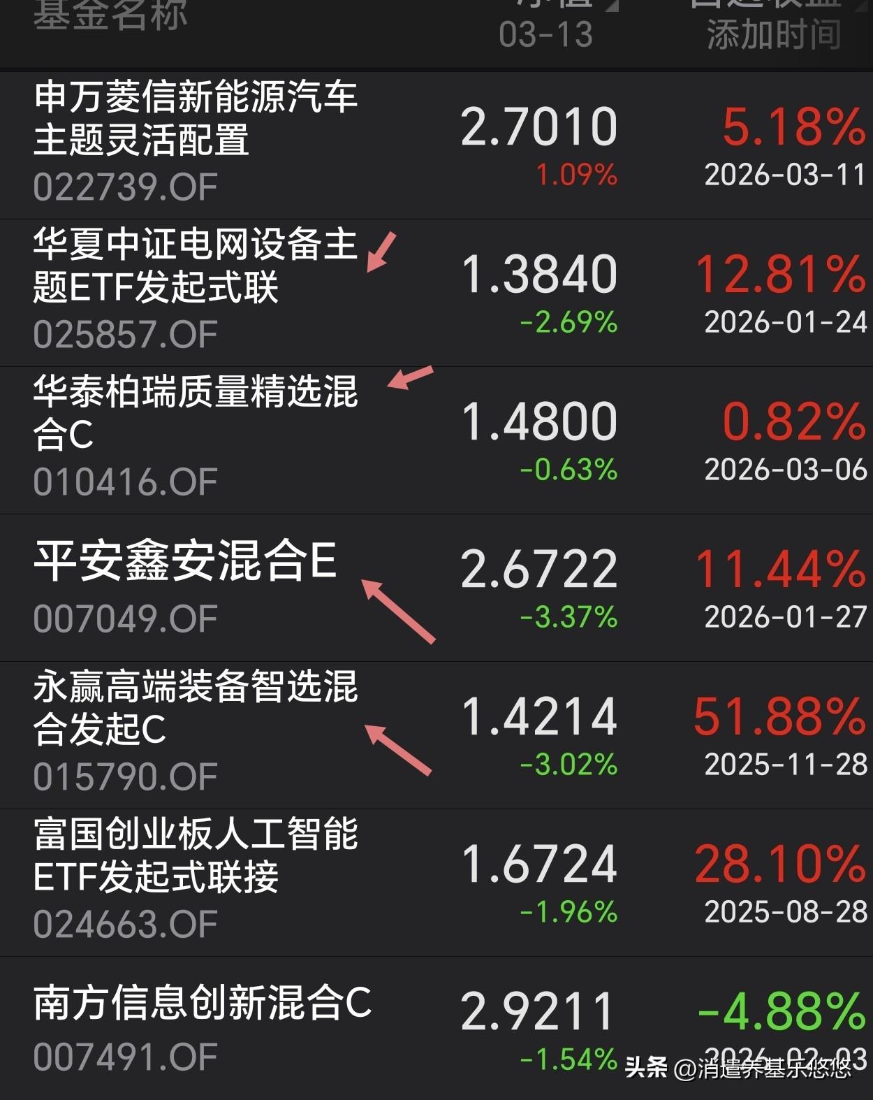 净值出来了,下周稳定了,今天是最后的洗盘?我们这边收盘,石油期货开始跳水,A50期指直线上升,美三大股指期货拉升,这不是专门与大A唱对台戏吗?A股那些大户机构门,就是沉不住气,没有主心骨!但愿下周一这些捣乱的期指不再吓唬我们。 净值出来了,那个电网设备平安鑫安又大跌超3%,昨天还加仓了它,真的坑人!经理调仓换股了,换的什么板块,连续大跌3天近10%!混合型基金太不靠谱了,经理凭一时的侥幸赢得市场,经不起考验,今天果断把它转到电力板块!这个华泰博瑞能涨抗跌,不错的cpo!
