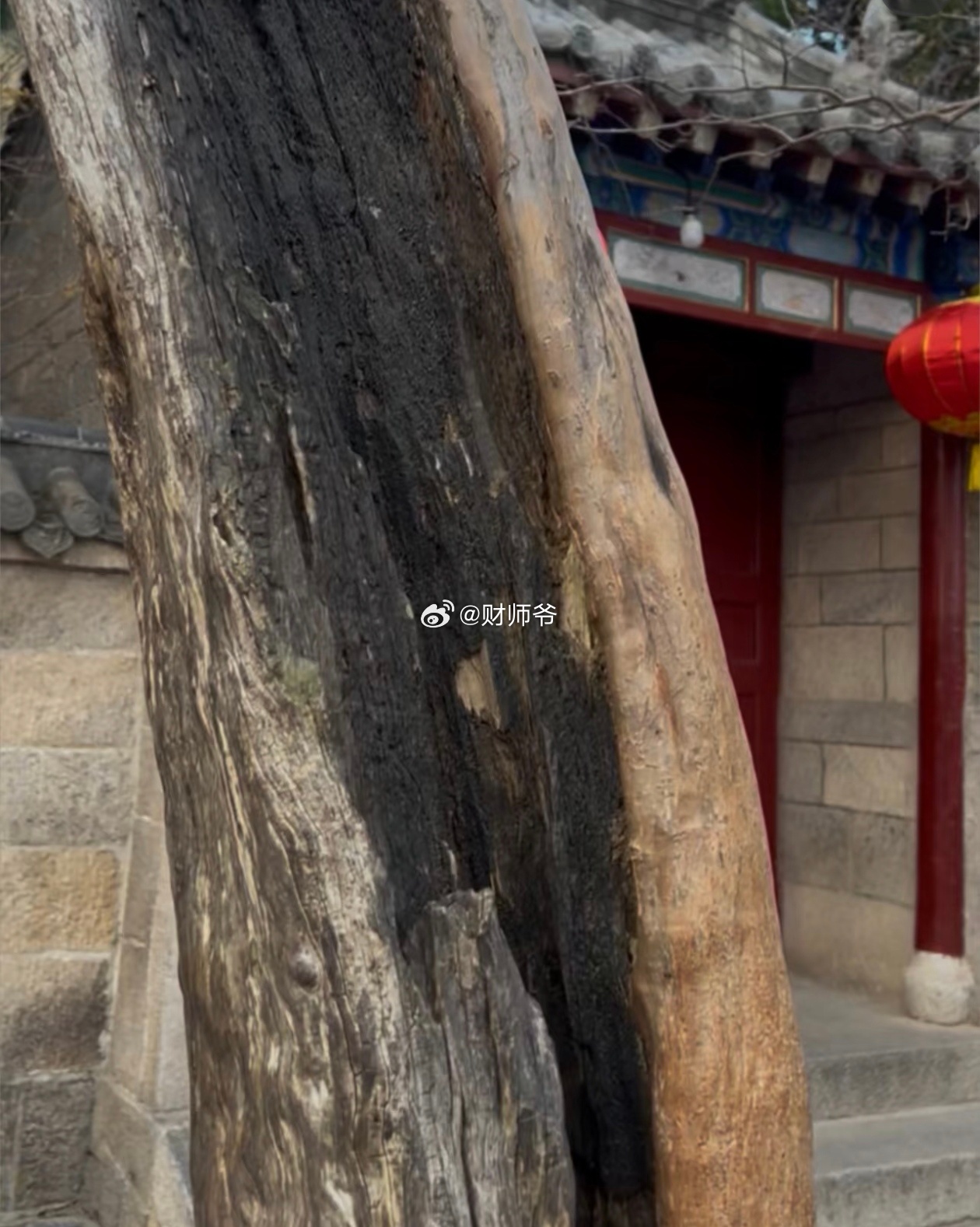 青岛市崂山太清宫三清殿前的一颗石榴树,曾遭雷击,但依然存活。树芯处已被真菌感染,但被很多相信【雷击木】的道友和群众摸出了包浆。有人甚至还去树干雷击处抠上面的木头,有的则是捡该树掉落的一些树枝回去。其实道教中的【雷击木】不是说你捡一块被雷击过的树木回去就完事儿了,还是要在上面请有分量的道长写上道符才有效的。