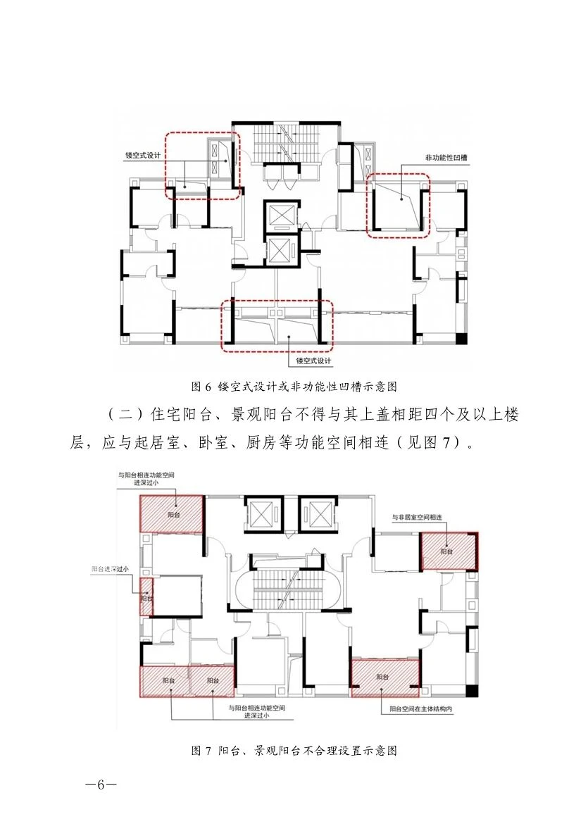 1️⃣住宅户型设计时,不得出现房间镂空式设计或非功能 性凹槽