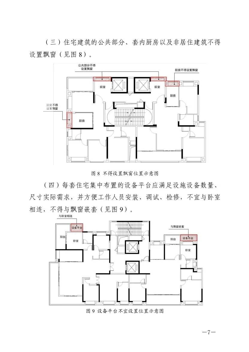 3️⃣住宅建筑的公共部分、套内厨房以及非居住建筑不得设置飘窗