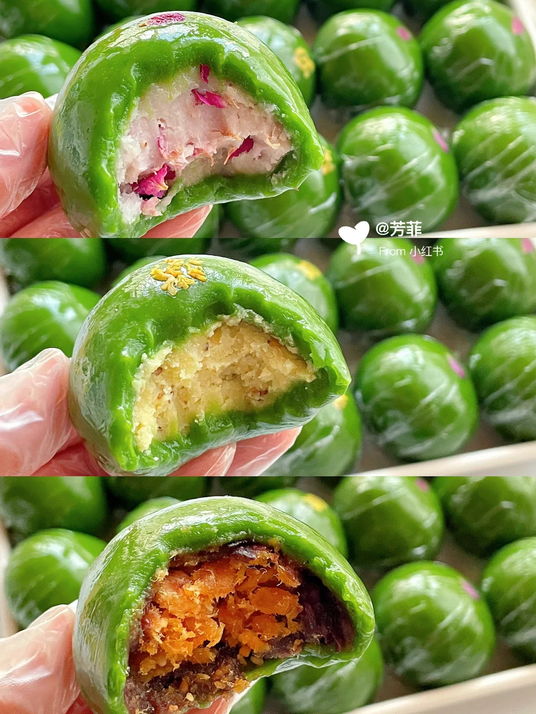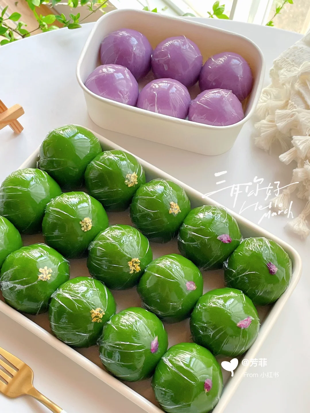 🌿吃出春天的味道 我在寻春味,很想和你交换春天💃🏻💃🏻分享万能青团皮的做法,最爱的低卡玫瑰山药馅和桂花绿豆馅,🌸花香浓郁清新好吃不甜腻,全家人都爱!👯山药健脾玫瑰疏肝桂花温肺绿豆清热,很适合春天食用哦~
