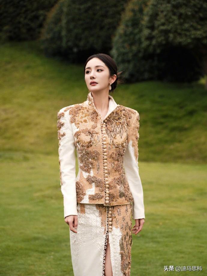 杨幂在照片里,她身着华丽的高定服饰,刺绣与亮片的搭配相得益彰,把秋日的氛围感直接拉满。 精致的妆容和优雅的姿态,完美地诠释了时尚与高级感。每一张照片都展现出她独特的魅力。不得不说,杨幂的时尚驾驭能力真的超强,无论什么风格都能轻松拿捏。杨幂礼裙