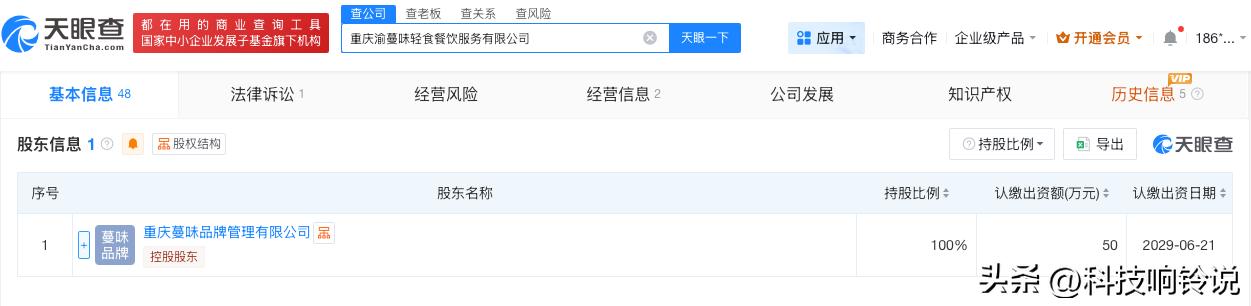 【蔓味轻食关联公司成立不足2年 蔓味轻食关联公司揭秘】连锁轻食店员感冒边擦鼻涕边切菜 据报道,近日,记者卧底发现蔓味轻食、谨食、超模厨房等知名轻食连锁店后厨存在卫生隐患,引发关注。 天眼查App显示,蔓味轻食关联公司重庆渝蔓味轻食餐饮服务有限公司成立于2024年6月,法定代表人为蒋霞,注册资本50万人民币,经营范围包括餐饮服务、食品销售、品牌管理、餐饮管理等,由重庆蔓味品牌管理有限公司全资持股。 天眼查信息: