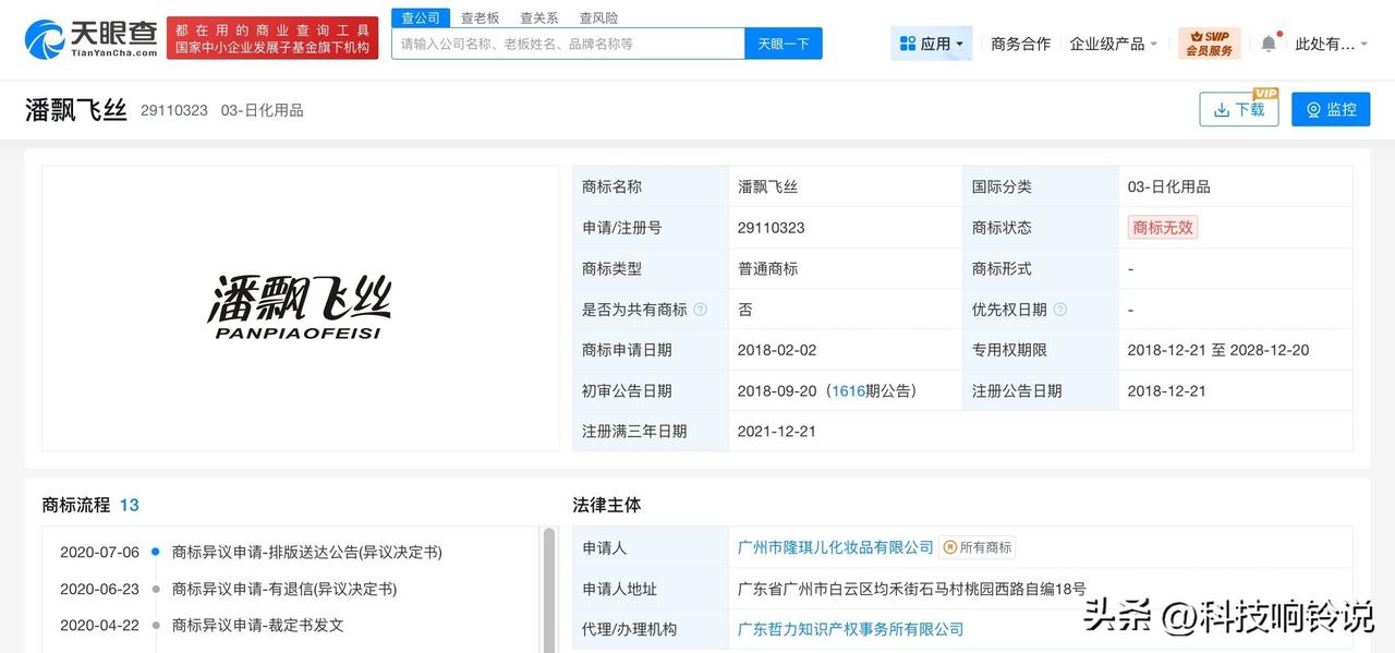 【仿冒五粮液的五稂液商标被驳回 知名品牌仿冒商标盘点】五粮液变五稂液 据媒体报道,临近3·15消费者权益保护日,媒体起底酒业销售乱象,“五稂液”仿冒五粮液,仿冒商标相关话题引发热议。 天眼查知识产权信息显示,“谊滨五稂液”已被某食品公司申请注册为商标,国际分类为酒,但该商标已被驳回,目前为无效状态。此外,类似商标如“五狼夜”、“武郎液”、“五狼液”、“伍榔椰”也已被申请注册,申请人包括某品牌管理公司及多个自然人等,但这些商标同样已被驳回,为无效状态。值得一提的是,四川省宜宾五粮液集团有限公司曾申请注册多枚近似商标,如“五烺液”、“五硠液”、“五朖液”等,其中部分商标已注册成功。 多个知名品牌商标也曾被仿冒,例如仿冒荣耀的“荣燿”、仿冒雪碧的“雷碧”,以及仿造潘婷、飘柔、海飞丝的“潘飘飞丝”等。不过,这些商标大多已被驳回,为无效状态。 天眼查信息: