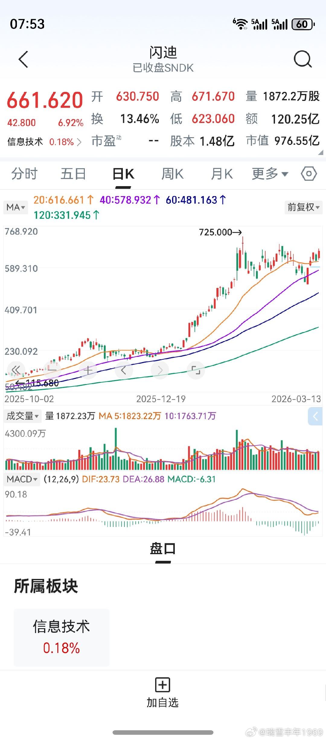 美光科技,闪迪。两者走势,高于个人预期。从去年到今年,两者的涨幅已经非常大了。但