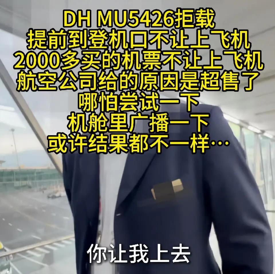 “我必须要走,我要去上海看医生啊” 3月11日,一位网友发视频 正月初八,女乘客从重庆到上海就医。因东方航空公司超售,工作人员拒绝让其登机。 雯女士当场崩溃,哭着说“我必须要走,我要去上海看医生” 工作人员给出的解决方案:改签、升公务舱,再补偿400块钱 雯女士因此,预约几个月花高价买的的专家号被取消。 雯女士觉得很不爽,自己提前到机场没有迟到,在与工作人员沟通时,仍然有乘客陆续登机,机场也没有广播询问其他乘客有无改签,就不让自己登机。 雯女士提出3万元的赔偿,工作人员给出的回应:我们拿什么去赔一个黄牛票?我们央企很重服务,不希望网上有舆论。 此事,双方“公说公有理,婆说婆有理”,目前双方未达成共识。 不懂就问: 现在都网上购票,怎么会出现机票超售? 上海大医院应该管理很严吧,女子的黄牛票怎么回事?