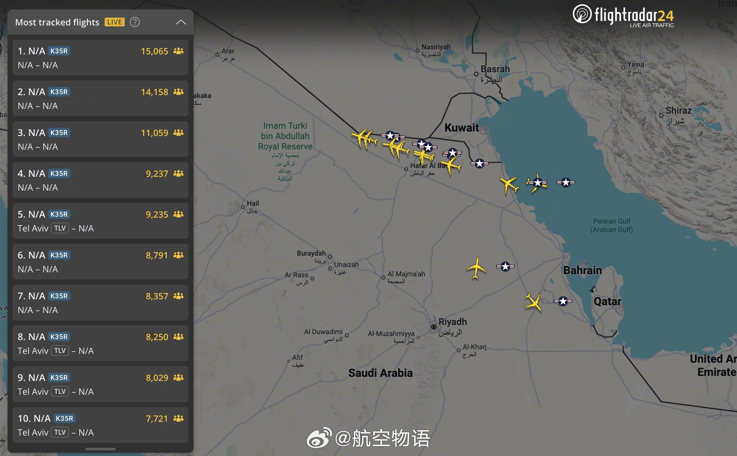 另外,这次空中相撞后,中东地区上空飞行的KC-135全部“认怂”打开ADS-B飞行,也就是说普通人都可以通过FR24这样的APP看到这些加油机的飞行动态