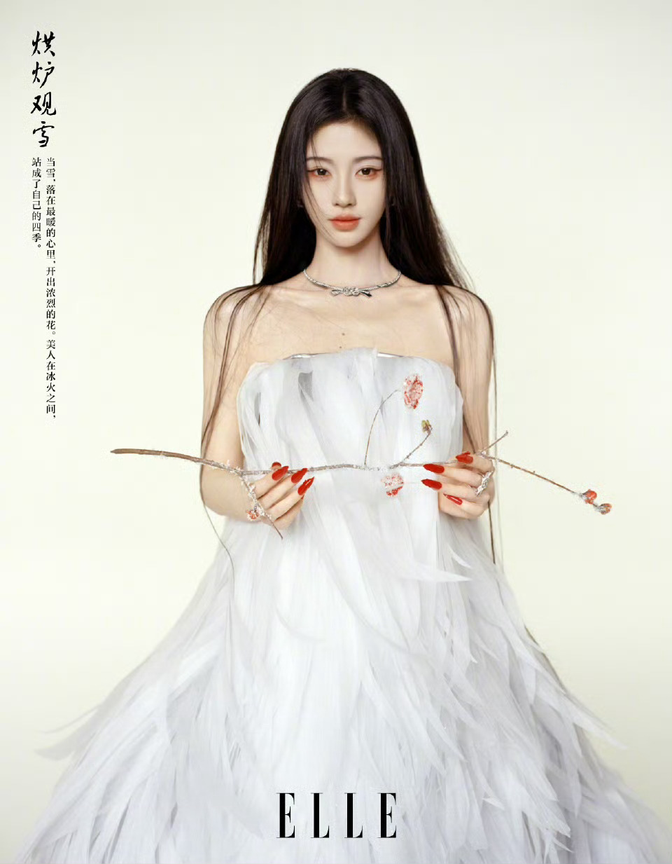 ELLE China 四月刊封面大片,在摄影师张嘉诚的镜头下,鞠婧祎以美人之姿诠释《雍正十二美人图》。