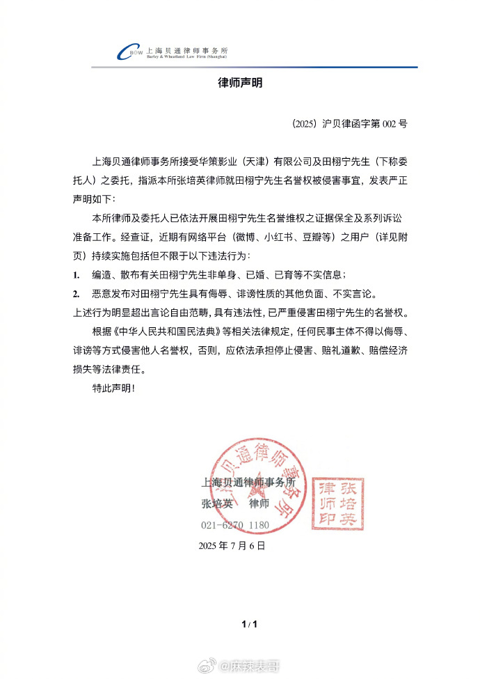 再来看看去年7月华策发的声明,说田栩宁单身、未婚、无小孩结合九成美晒与田栩宁亲吻