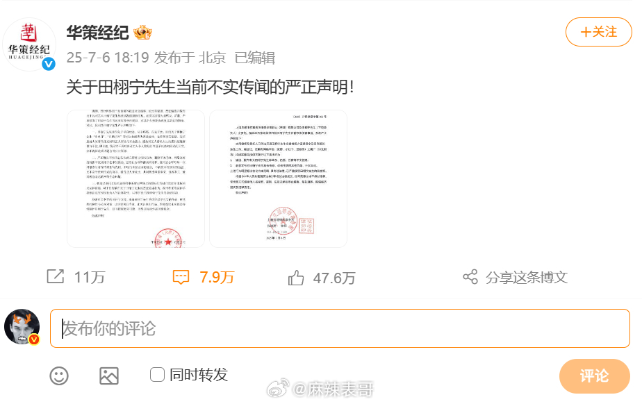 再来看看去年7月华策发的声明,说田栩宁单身、未婚、无小孩结合九成美晒与田栩宁亲吻视频,并曝田栩宁出轨有孩子的事来看是不是有了“我会自己进去”的感觉