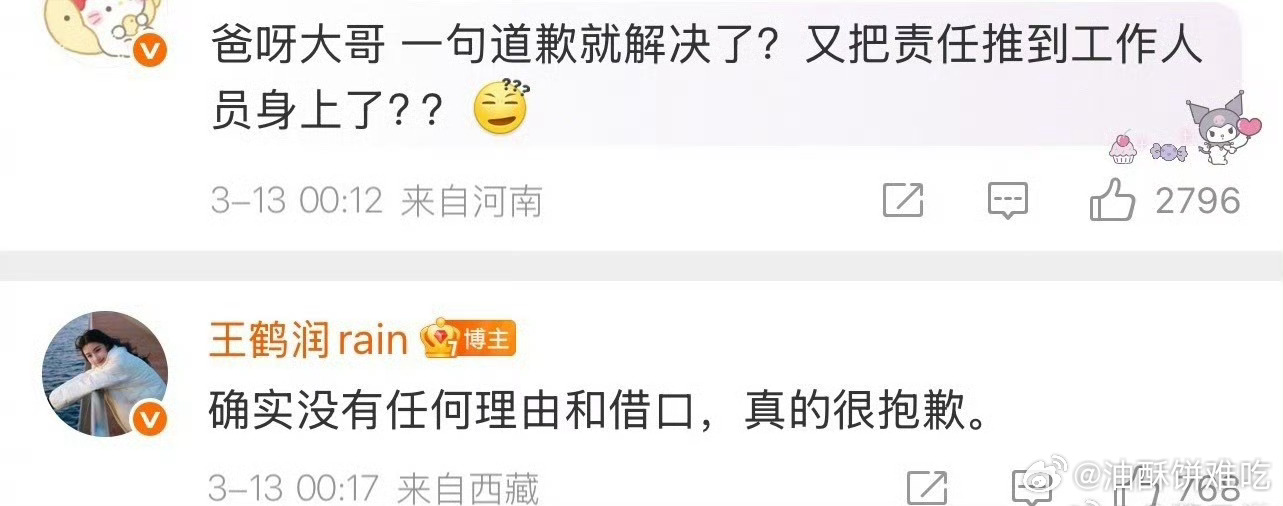 王鹤润微博账号评论吐槽王玉雯的事又反转了,王鹤润发博回应的时候是13号零点,ip在西藏,西藏飞上海当天最早的航班是下午三3点40,但是小红书用户 3点半拍到她在上海活动……也就是说飞机还没落地人已经化好妆开始活动了……