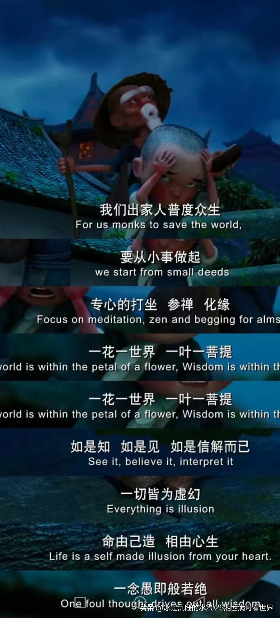 《大圣归来》! 我们出家人普渡众生 要从小事做起 专心的打坐 参禅 化缘 一花
