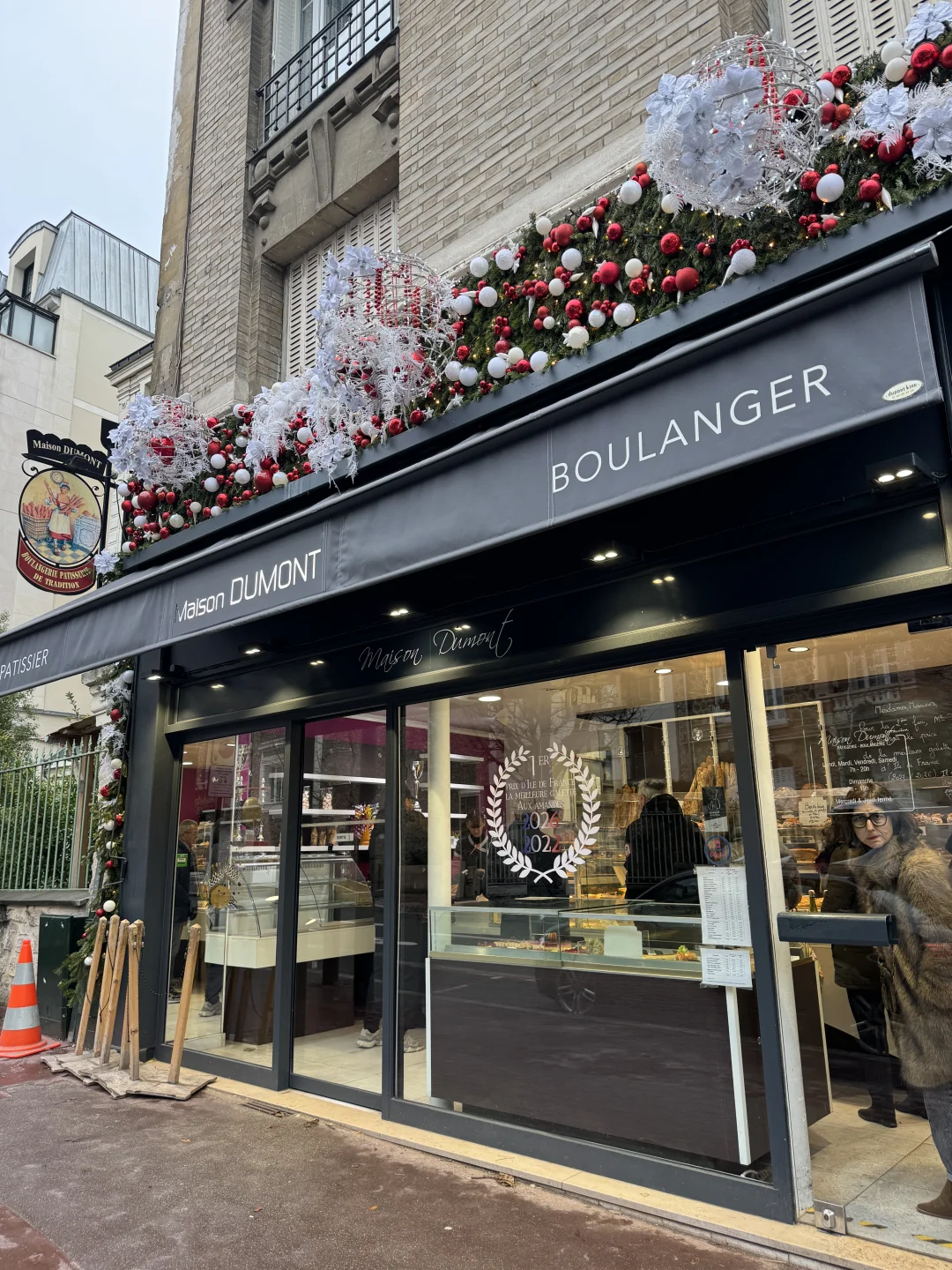 今年又幸运的吃到了fève ,💜紫色的小象看起来就很幸运🐘 2026年的冠军来自Clamart的Maison Dumont ,而且是第二次获奖了 这次跟好友相约特意去买来尝尝 第一眼其实就很传统 纹路就是特别old school的网格状,颜色是很漂亮的深金色 酥皮层次清晰,薄而脆 里面是很经典的 crème d’amande ,杏仁味很纯 整个店也很传统,就是社区店的感觉,跟我之前实习的店很像 店里的黑板上还傲娇地写着因为比赛规定,2022年获奖之后三年不能参赛,于是第四年一参赛就又得奖了🏆
