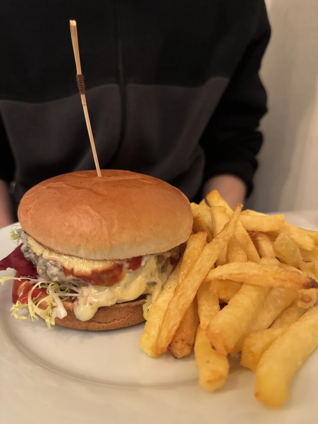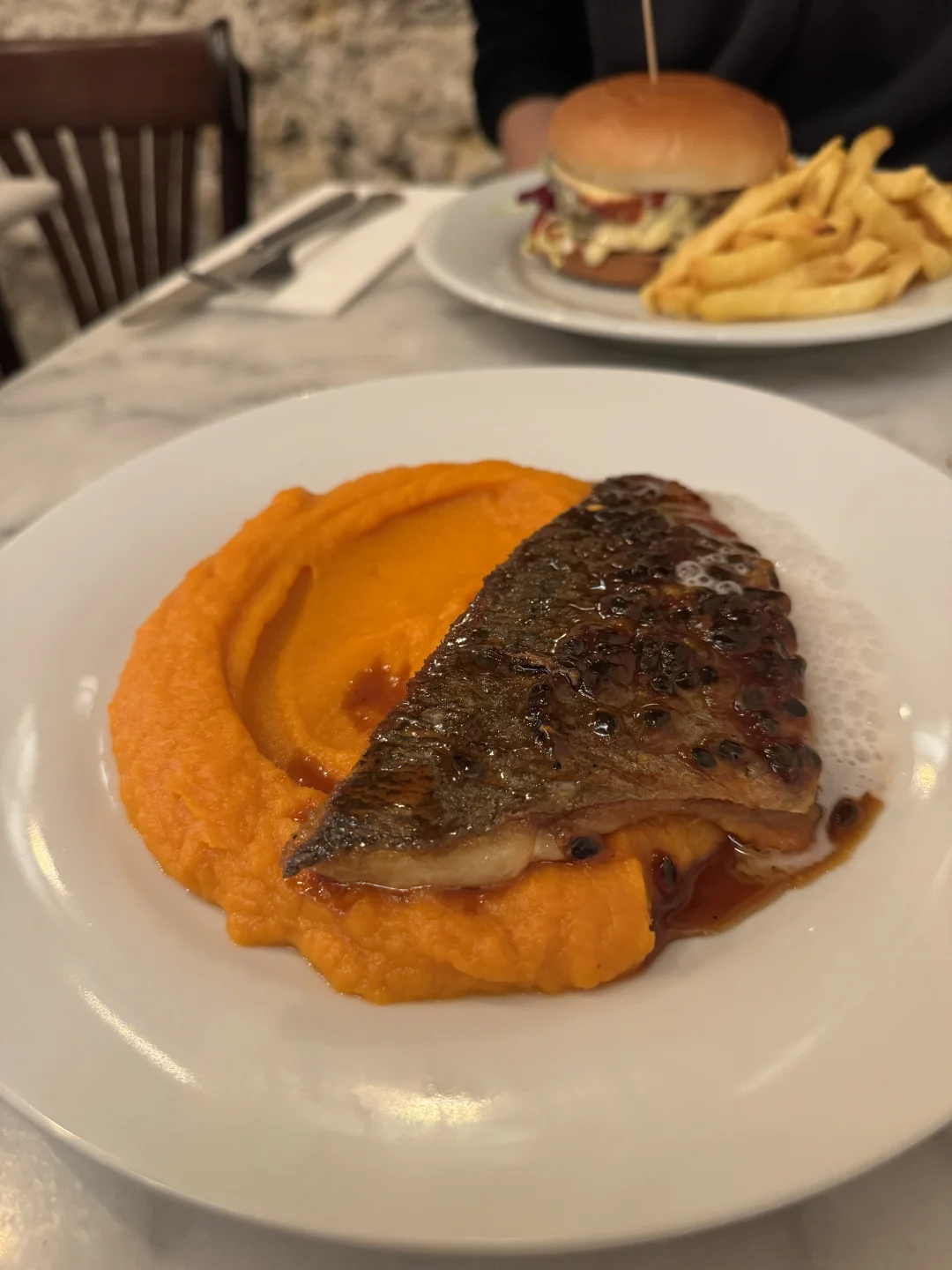 主菜点了一个汉堡和一份鱼,味道都挺扎实,是那种很标准的巴黎小酒馆水平——不花哨,但让人吃得很舒服