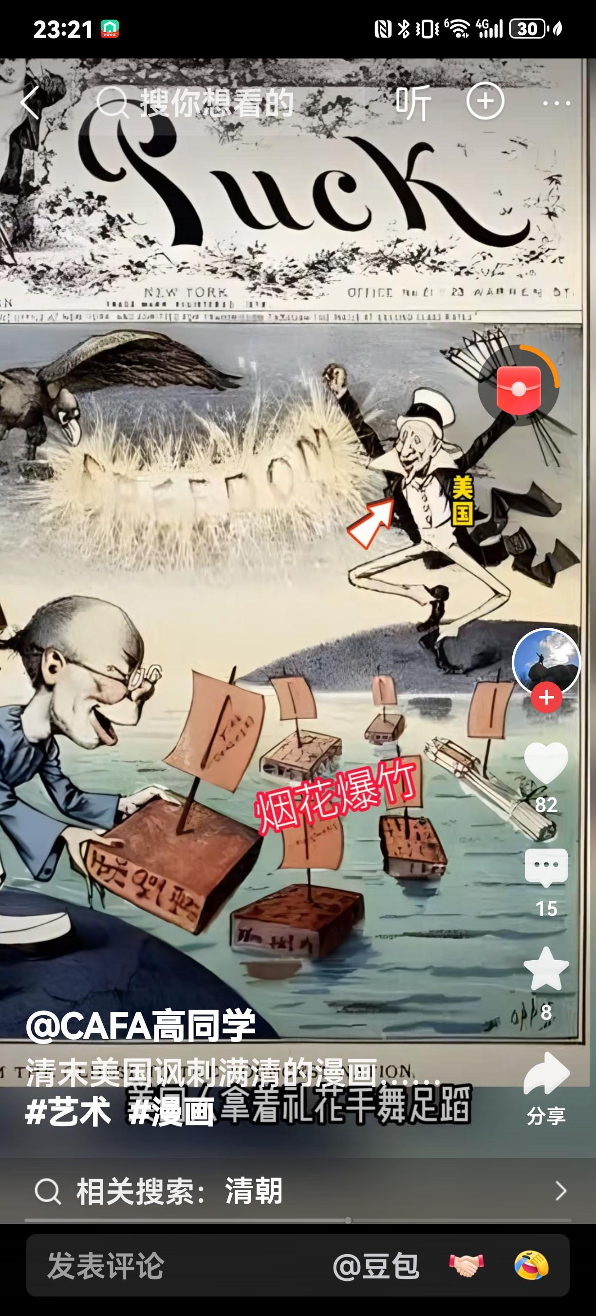 这是一幅1881年7月6日美国《PUCK》杂志的封面漫画,标题为“从最古老的国度到最年轻的国家”(From the Oldest to the Youngest Nation)。画面通过夸张与讽刺的手法,呈现了当时美国社会对满清政府及中国文化(实质属于满清文化)的偏见。 画中人物形象丑陋,其发辫被描绘成一串鞭炮,正在点燃一个写有“中华”字样的礼盒,象征中国向美国输送火药或烟花。这一设计既利用了中国作为火药发明国的文化符号,又暗含种族歧视的刻板印象——将中国人的身体特征(发辫)与危险品(鞭炮)强行关联,暗示“中国威胁”或“野蛮落后”(其实是满清奴隶制集团的野蛮落后)。上方盘旋的秃鹫则象征着美国对这份“礼物”的警惕或贪婪,整体构图充满殖民时代的傲慢与偏见。