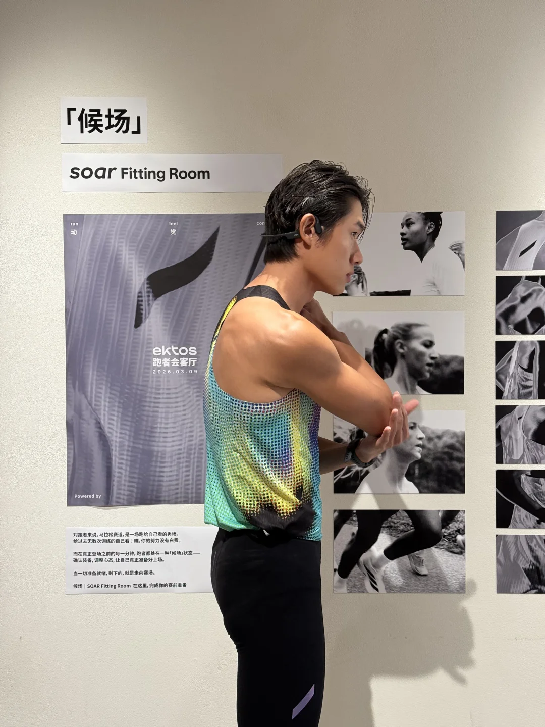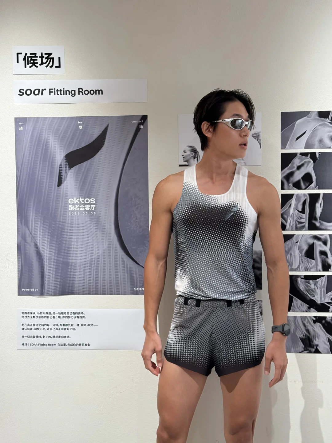 在上海 ektos SOAR fitting room 试了一下 SOAR SS26 新品。 对跑者来说, 比赛之前的每一分钟, 其实都像是在「候场」。 检查装备, 调整状态, 让自己准备好站上赛道。 最近也在准备接下来的训练和比赛, 四月、五月还有很多越野和半马。 希望在上海半程马拉松 跑出更好的自己。